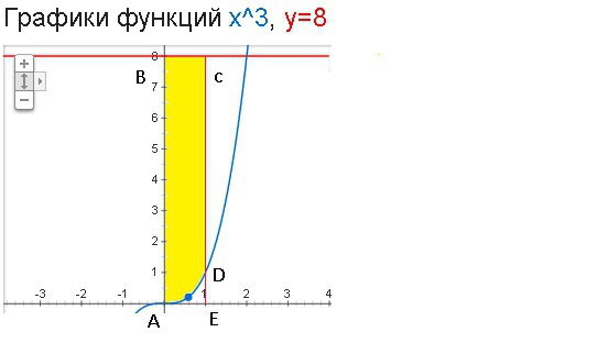 S=SABCE-SADE=1*8-∫x³dx=8-(x^4/4)=8-(1/4)=8-0,25=7,75
