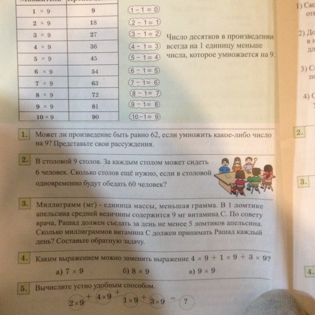 9*6=54 столько человек могут сейчас сидеть в столовой