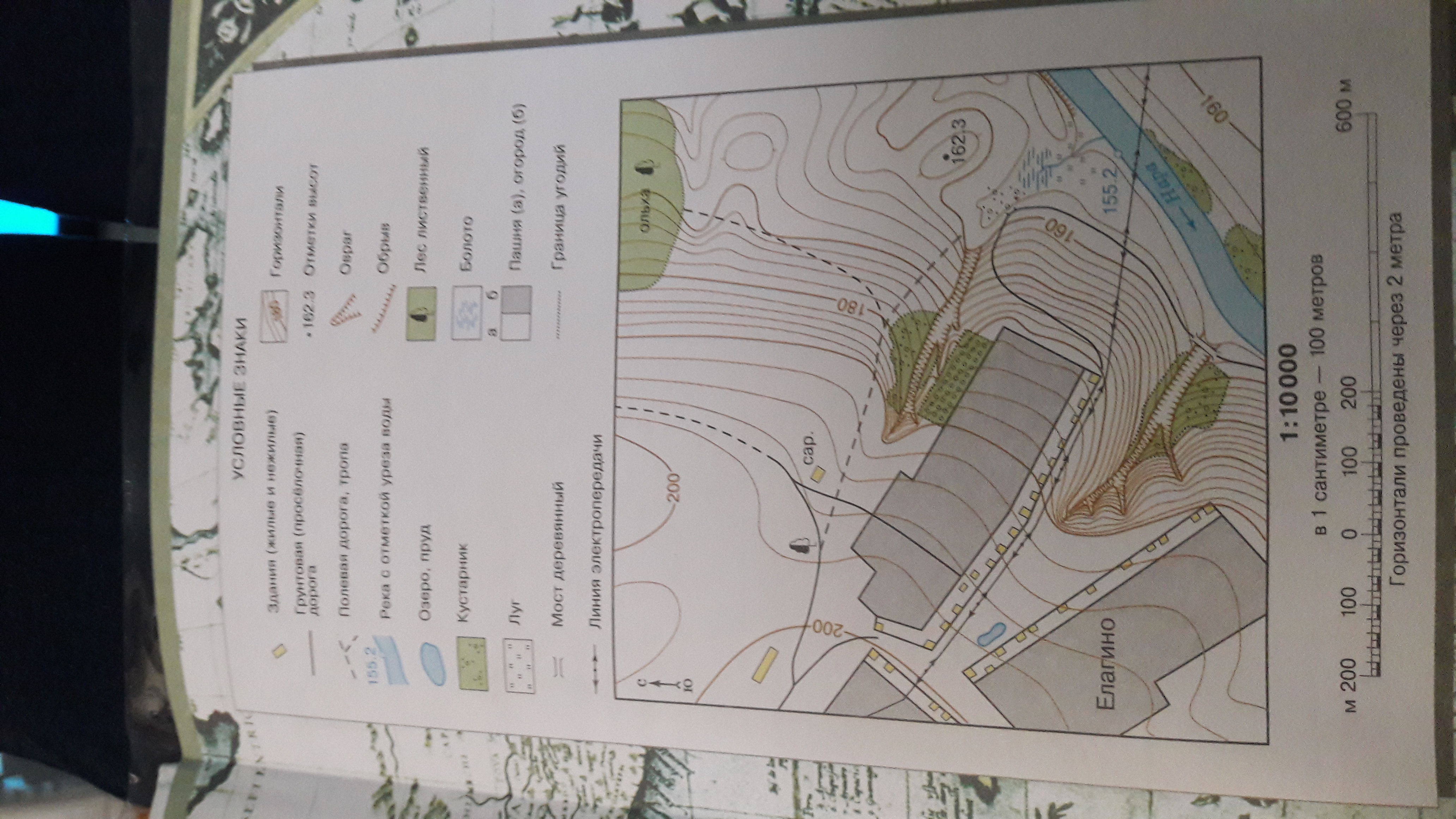 По плану местности определите 1) в каком направлении от реки Нары находятся заросли кустарника 2) в каком направлении от лиственного леса находится посёлок Елагино 3) в каком направлении через местность протекает река Нара 4) вдоль какого края посёлка Елагино проходит тропа