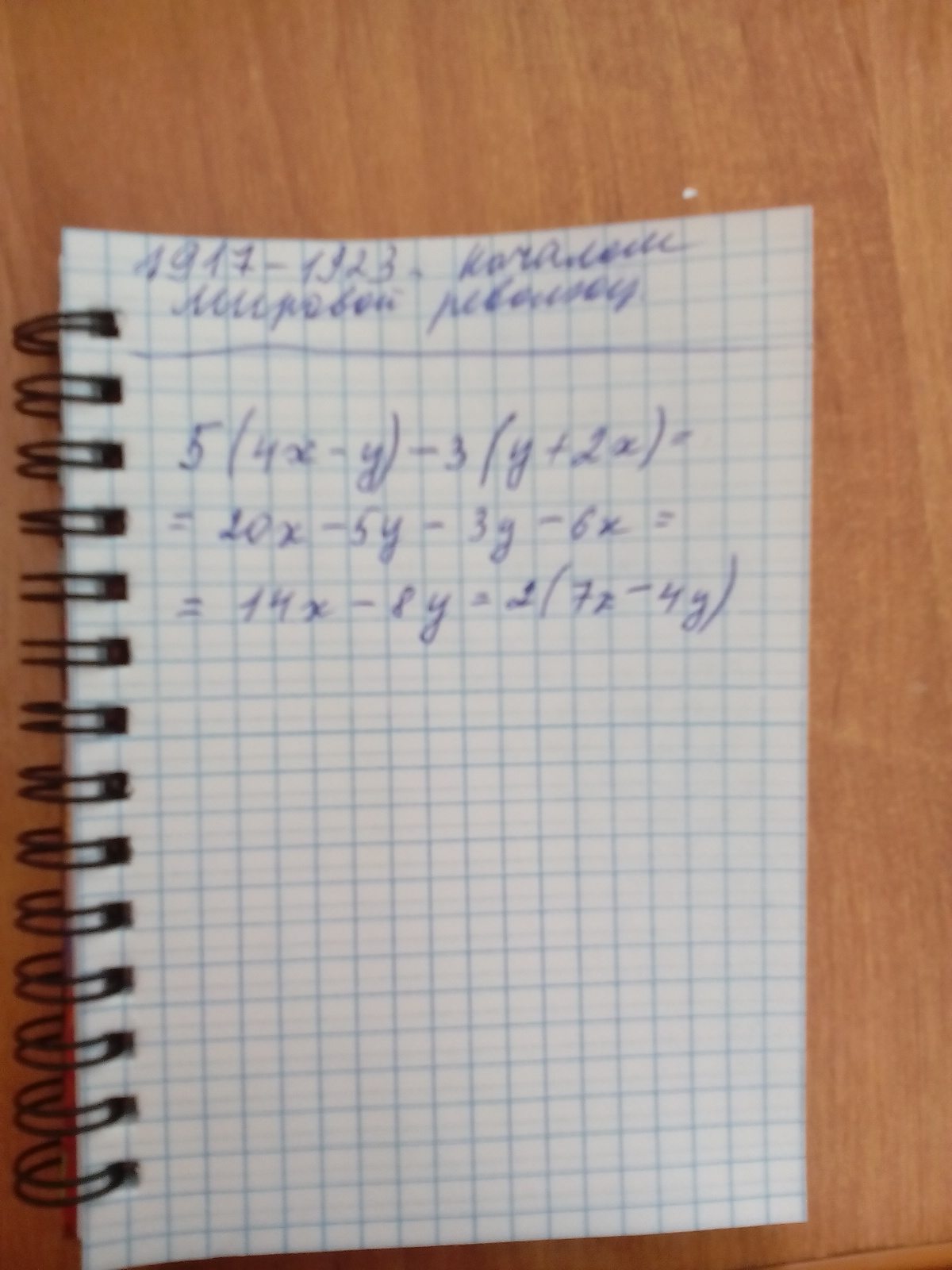 5(4х+2у)-3(у+2х)=20х+10у-3у-6х=14х+7у