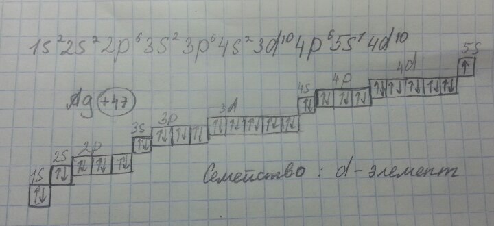 4 задание . запишите распределение электронов по квантовым ячейкам электронов у элементов номер 47, номер 35. Укажите семейство элементов , электронную формулу.