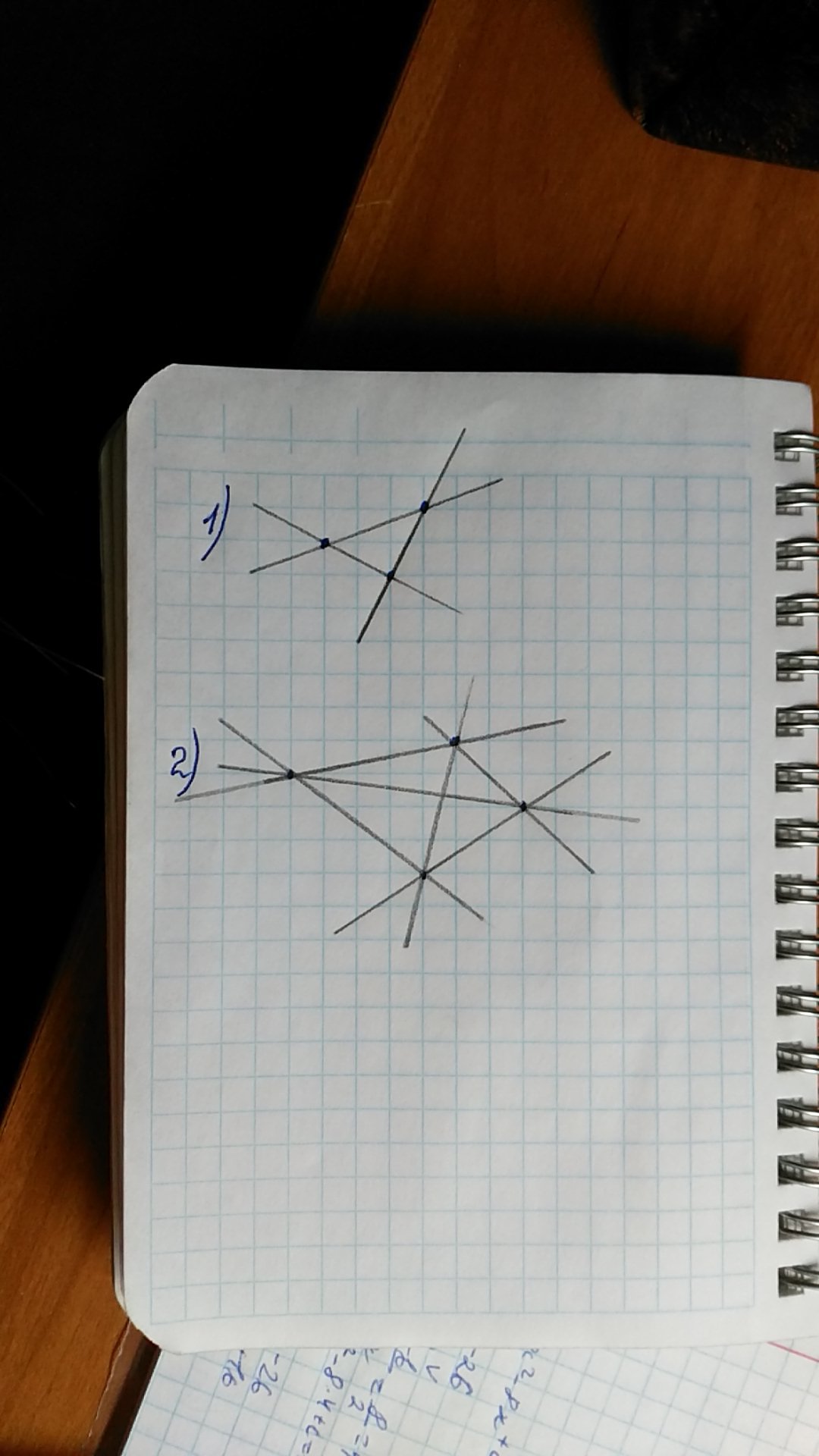 через каждые две точки проводится прямая. Сколько получится прямых если заданы : 1) 3 точки,не лежащие на одной прямой 2)4 точки ,никакие три из которых не лежат на одной прямой. сделайте рисунок к каждому из случчаю фото пж 20 баллов