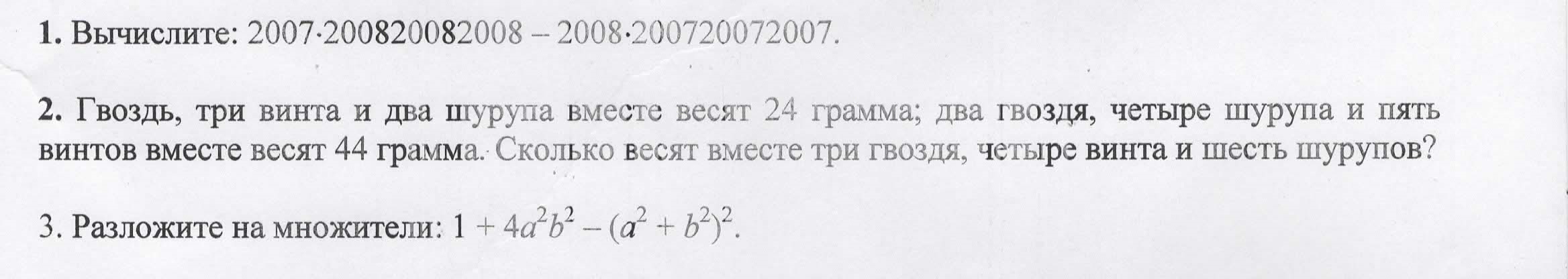 Получим, что 1гвоздь+2винта+2шурупа=20 гр