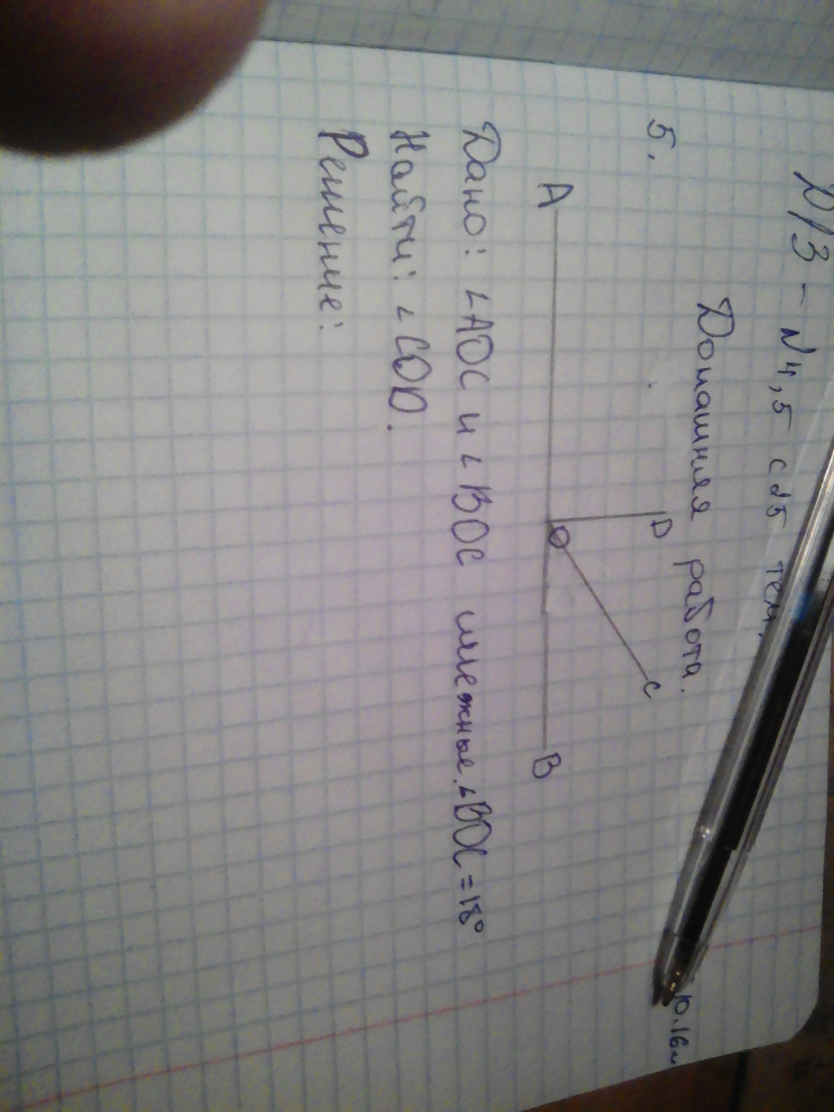 Углы АОС и ВОС смежные, луч ОД лежит внутри угла АОС так, что угол АОД прямой. Найдите угол СОД, если ВОС 18 градусов.