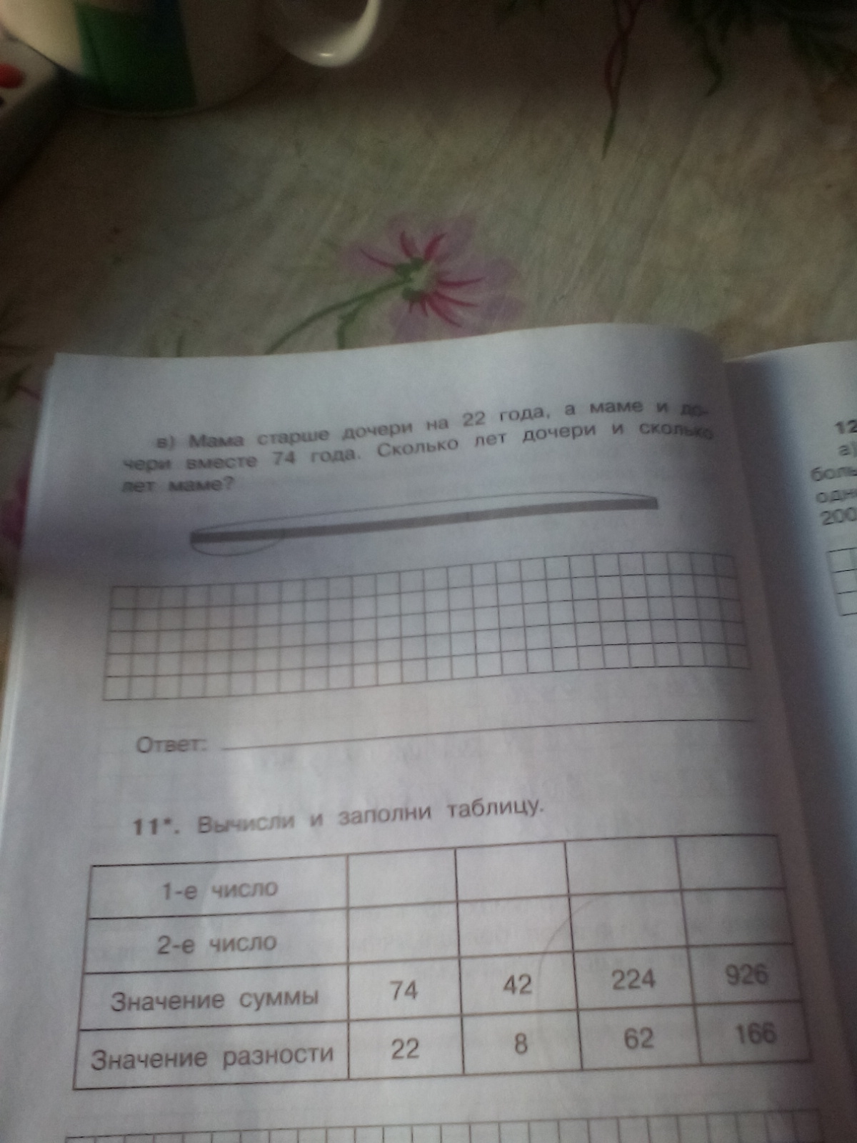 мама старше дочери на 22года,а маме и дочери вместе 74 года. сколько лет дочери и маме?