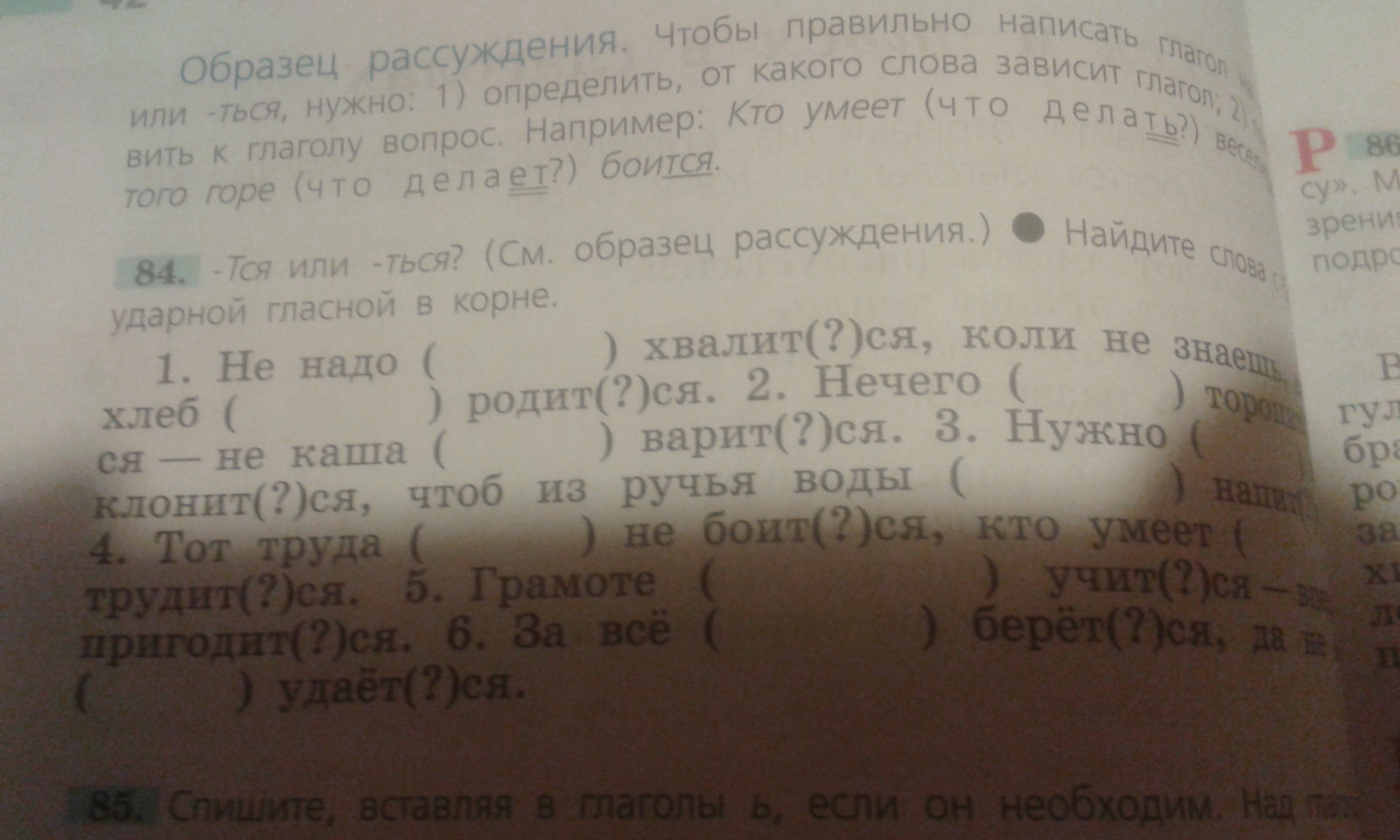1) хвалиться , родится 2) варится 3) клониться 4) боится , трудиться 5) учиться, пригодится 6) берется, удается