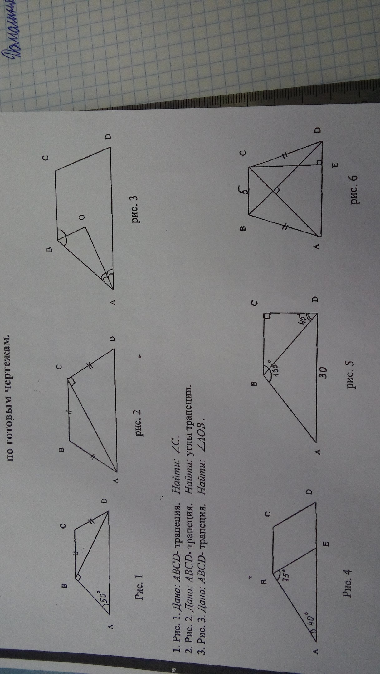 3)В трапеции сумма углов прилежащих к боковой стороне равна 180°, Сумма половинок этих углов равна 90°. Значит ∠АОВ=90°.