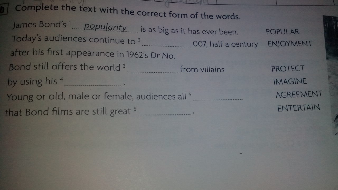 2) enjoy 3) protection 4) imagination 5) agree 6) enterntainment