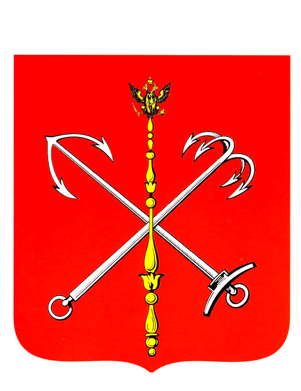 Цвет щита _ символизирует кровь,пролитую в боях со шведами в период. Сев войн,,__________Скипетр-с орлом это символ царской власти,он показывает статус Петербург,,как столица Росс, империи __Речной Якорь -символ речного порта,__Щит_ защита , Могущество , Мужество!!!!!!!!)))))))))))))))))))