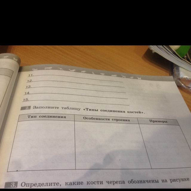 Типы: 1шов- неподвижное соединение, 2сустав- подвижное соединение, 3полу подвижное соединение.