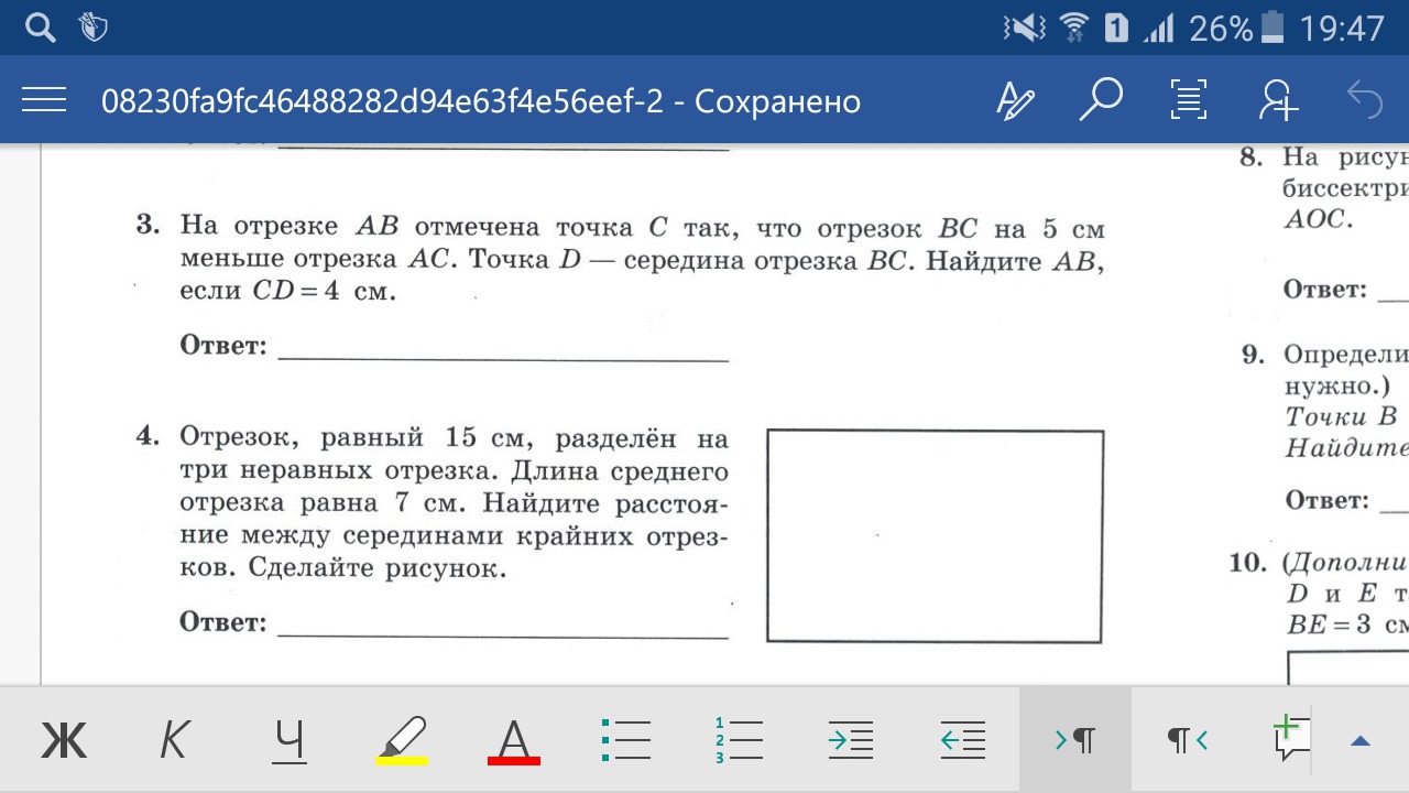 Если точка D середина отрезка CB, то CB = 8см. (CD+DB).
