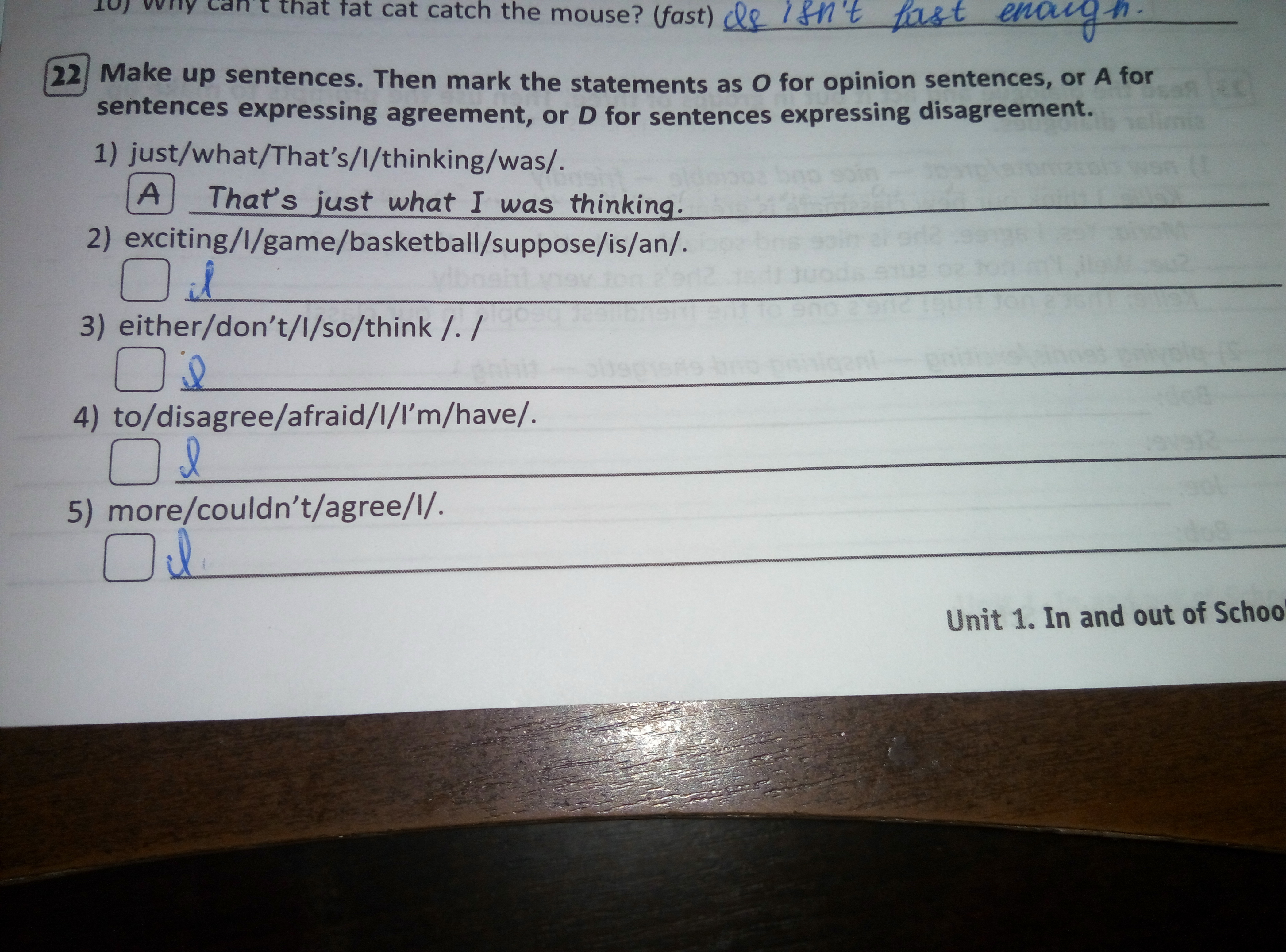6) I don't agree with you. (D)