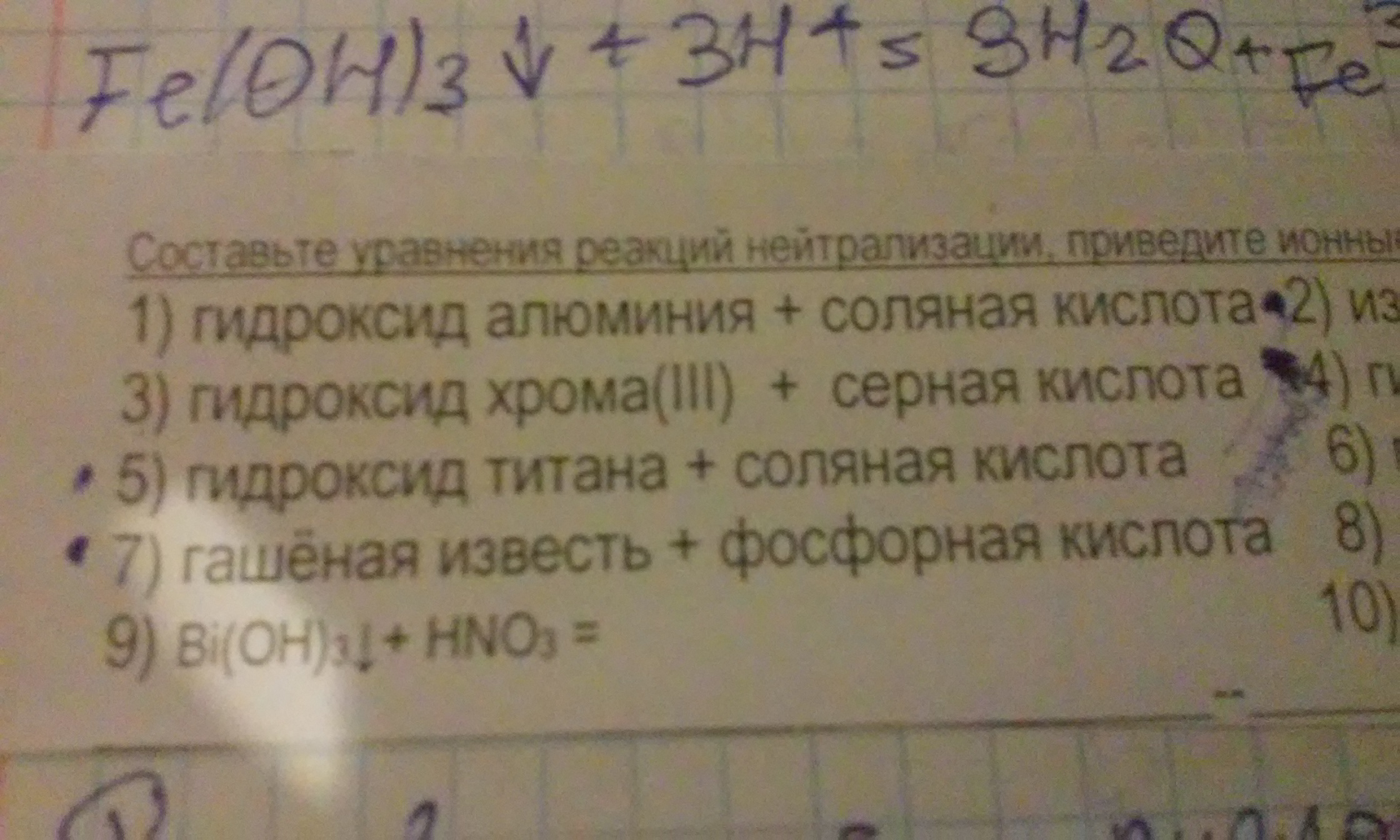 9)Bi(OH)3+3HNO3-->Bi(NO3)3+3H2O