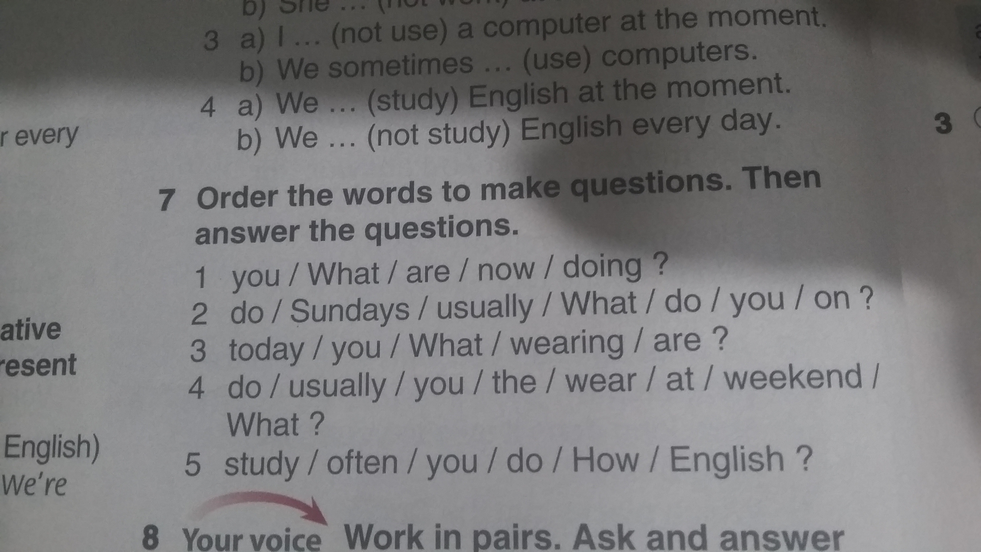 1)What are you doing now? -I am eating now.