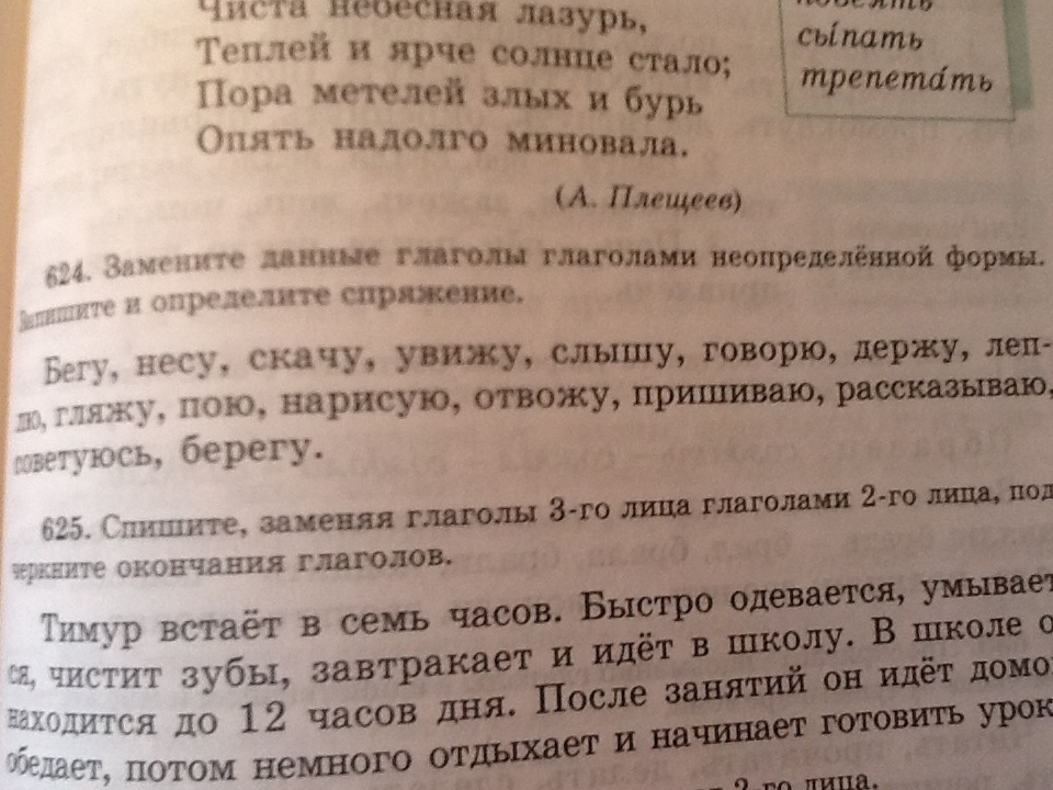 Замените данные глаголы глаголами неопределенной формы. Запишите и определите спряжение. Упражнение 624