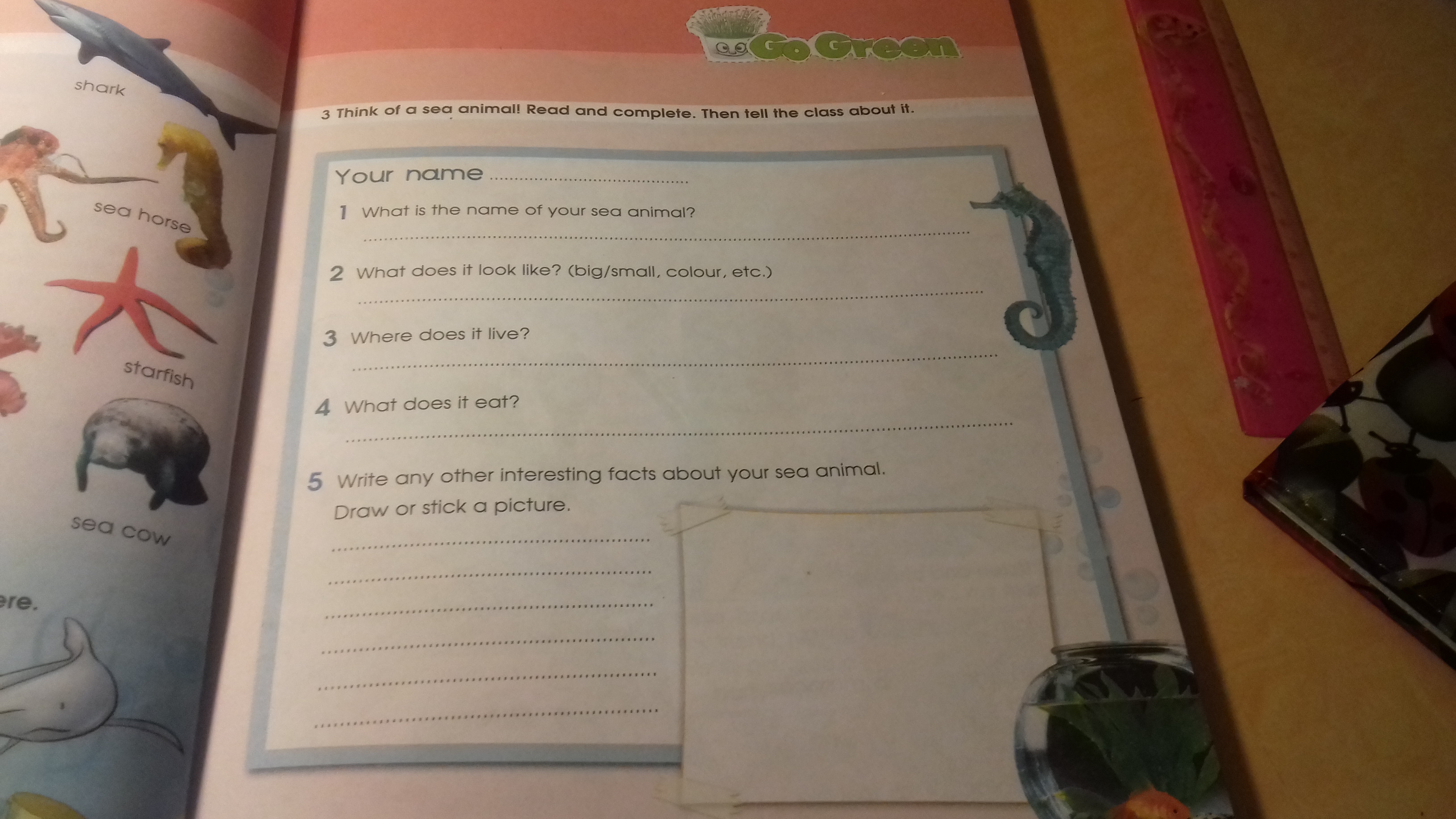 1) My favourite sea animal names shark.