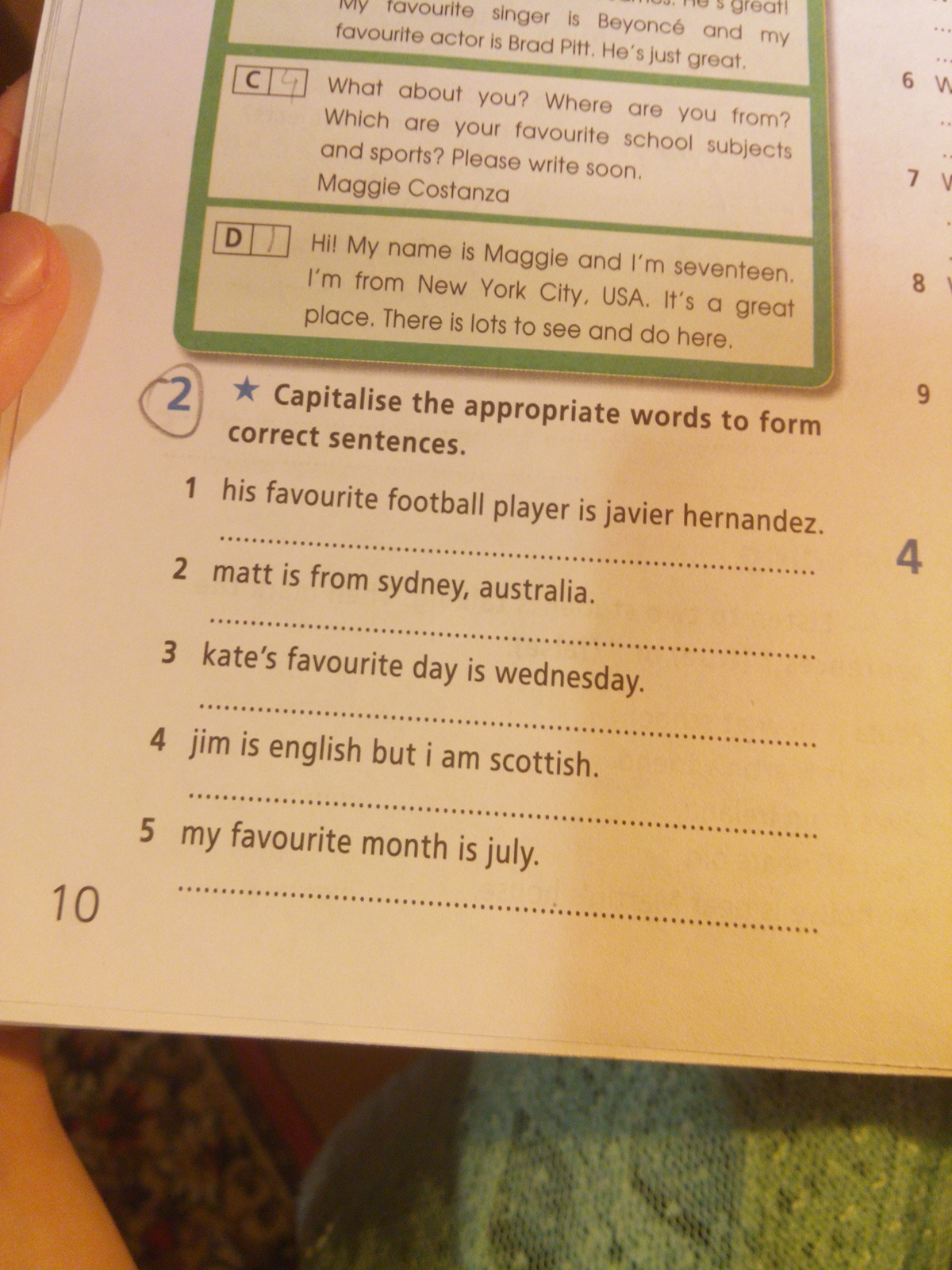 Надо проставить заглавные буквы, суть задания я выполнила.