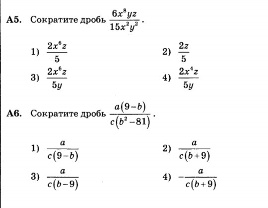 сокращаем 6 и 15 выйдет 2 и 5 - потому что у них общий дельник (3). дальше сокращаем (x) - степени при делении отнимаются поэтому сверху (х) в шестом степени а снизу исчезает. дальше (y) - по той же причине сверху исчезает а снизу просто (y). а z не трогаем потому что снизу не на что сокращать