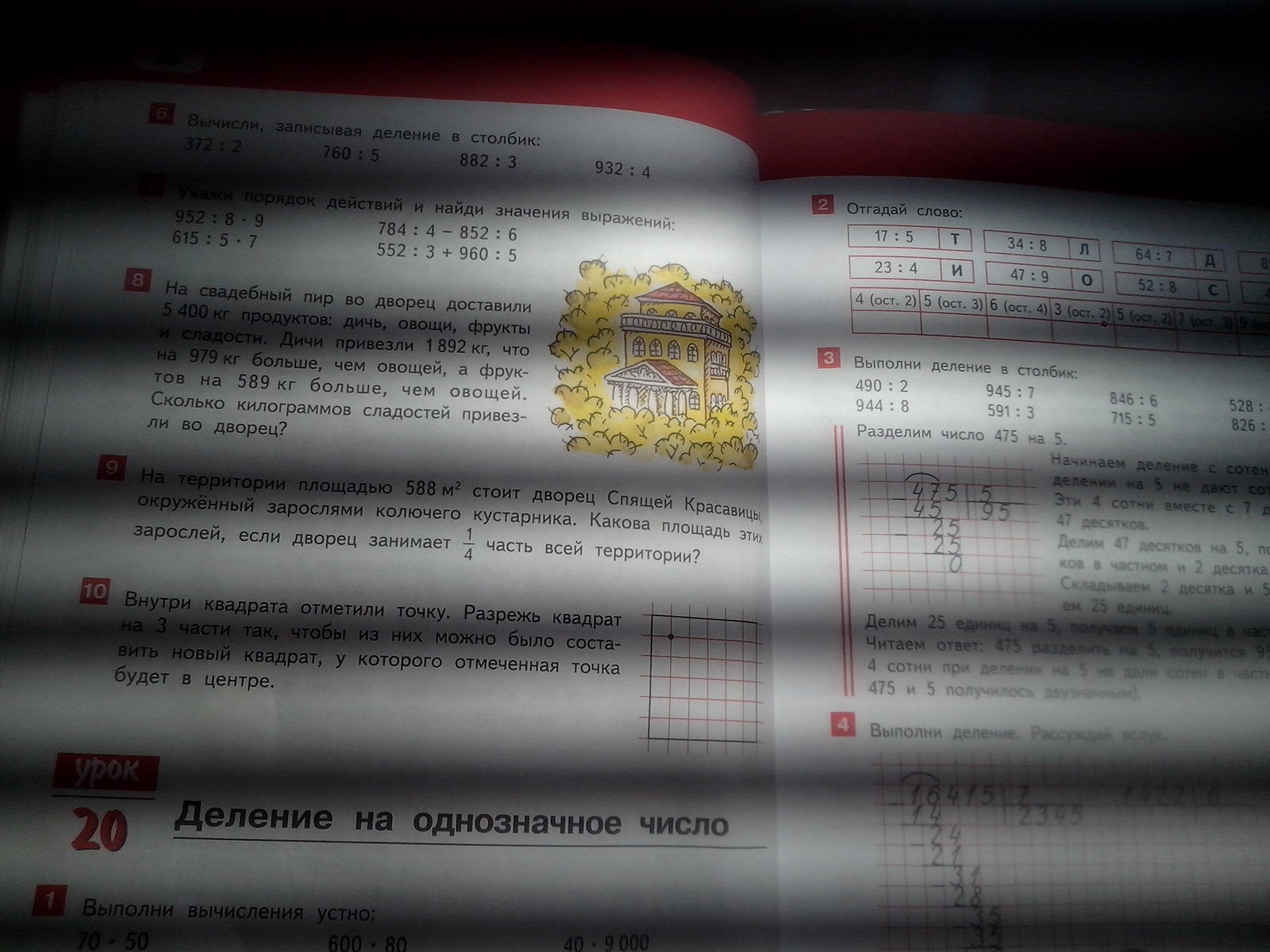 так как дворец занимает 1/4 всей площади, то кустарник занимает остальную(3/4):