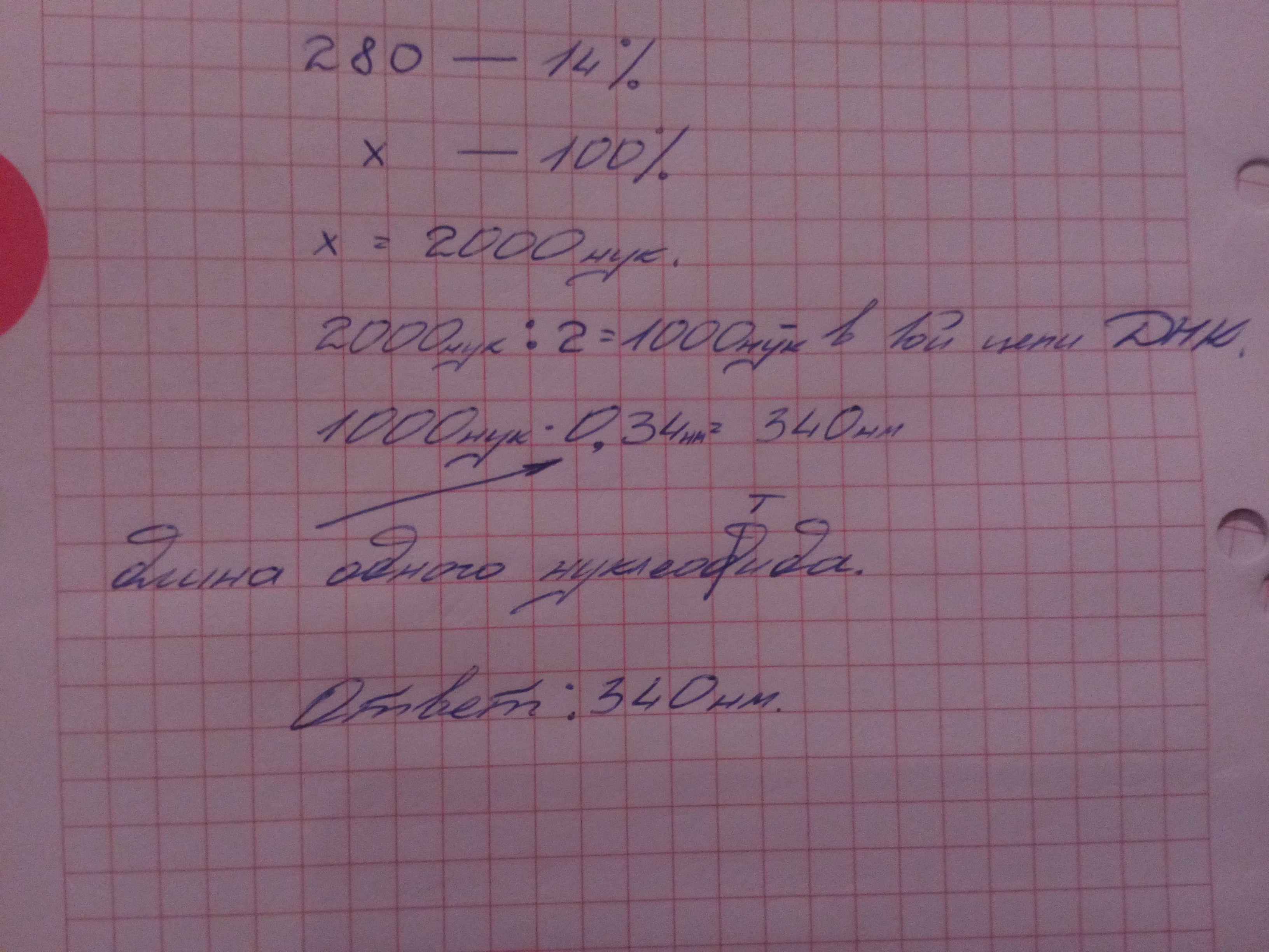 Фрагмент молекулы ДНК содержит 280 остатков цитидиловых нуклеотидов, что составляет 14 % от общего количества нуклеитидов. Определите длину данного фрагмента молекулы ДНК.