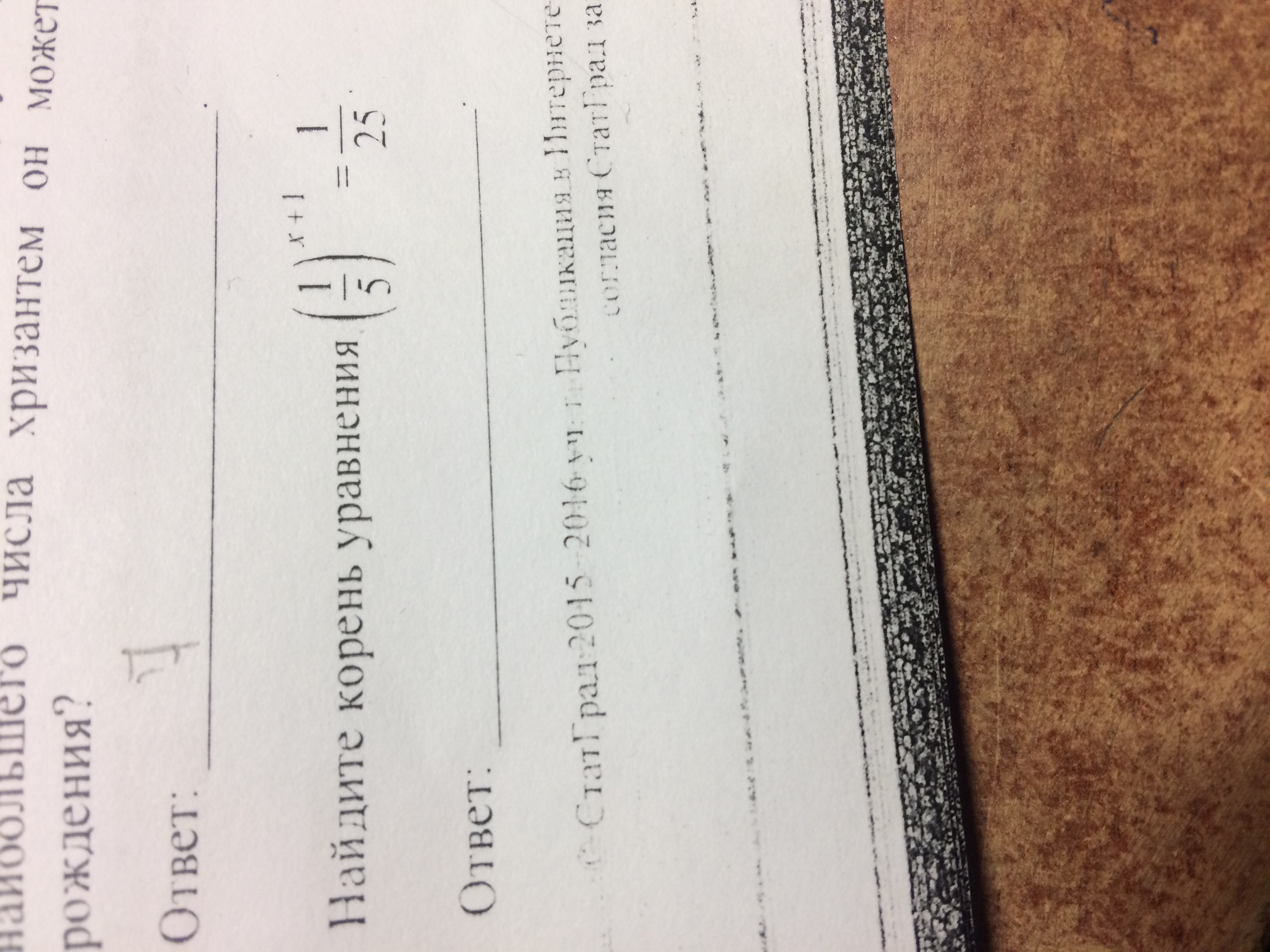 Найти корень уравнения (1/5)^х+1=1/25
