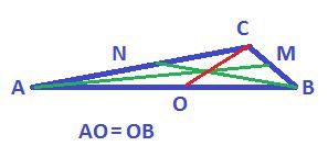 Прочтите произвольный треугольник АВС. С помощью измерительной линейки проводите в нем две медианы АМ и ВN Через точку пересечения этих меридиан и третью вершину С проведите прямую. Сравните длины отрезков, на которые эта прямая разделит сторону АВ. Какие предложения вы можете сделать?