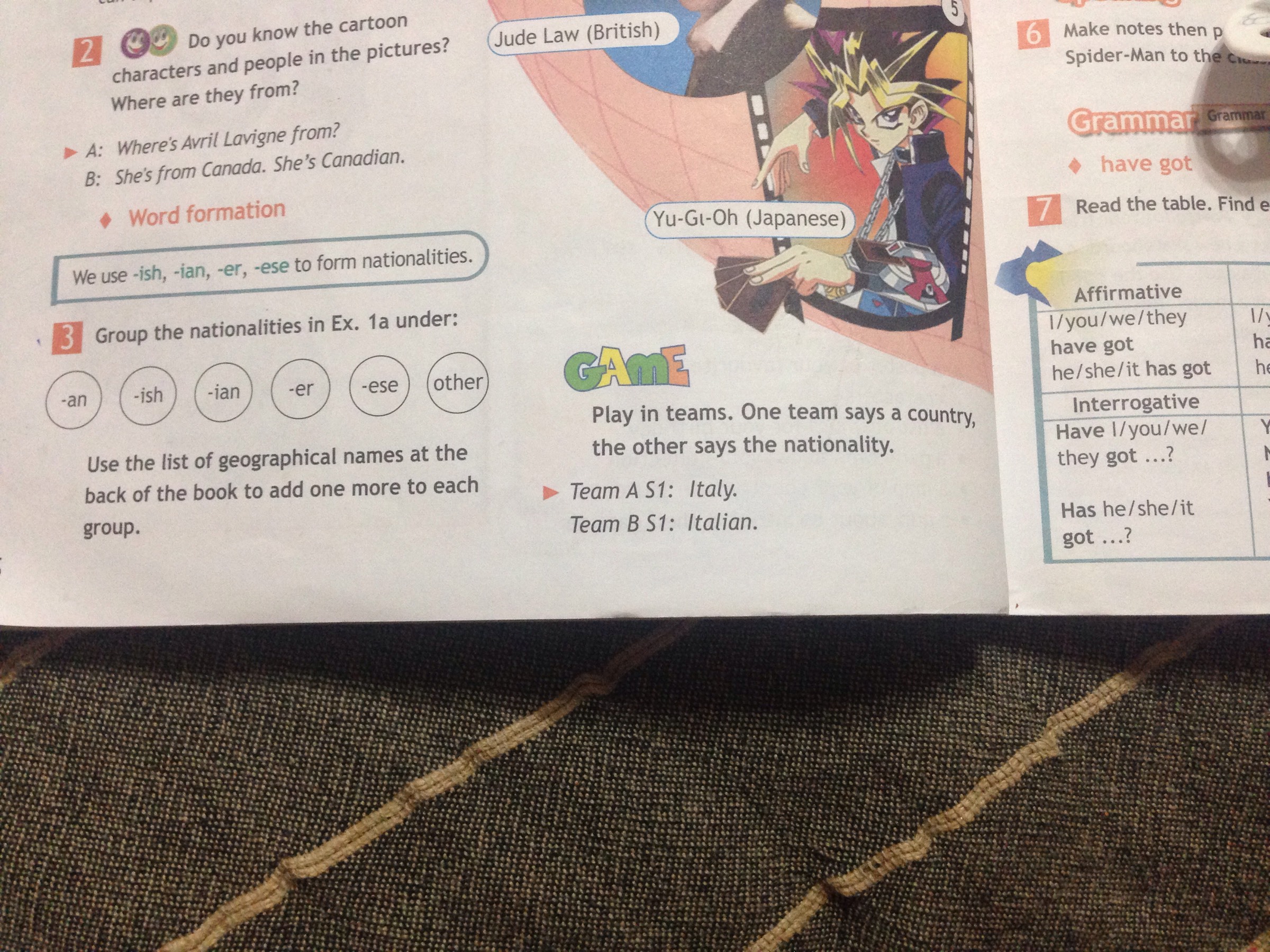 сзади книги должны быть национальности с определенными окончаниями. Впиши их в столбики