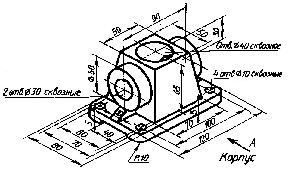 Постройте чертёж детали ( главный вид, вид сверху, вид слева ) по её наглядному изображению с учётом симметрии в 2 плоскостях,нанесите размеры. Помогите пожалуйста!!!