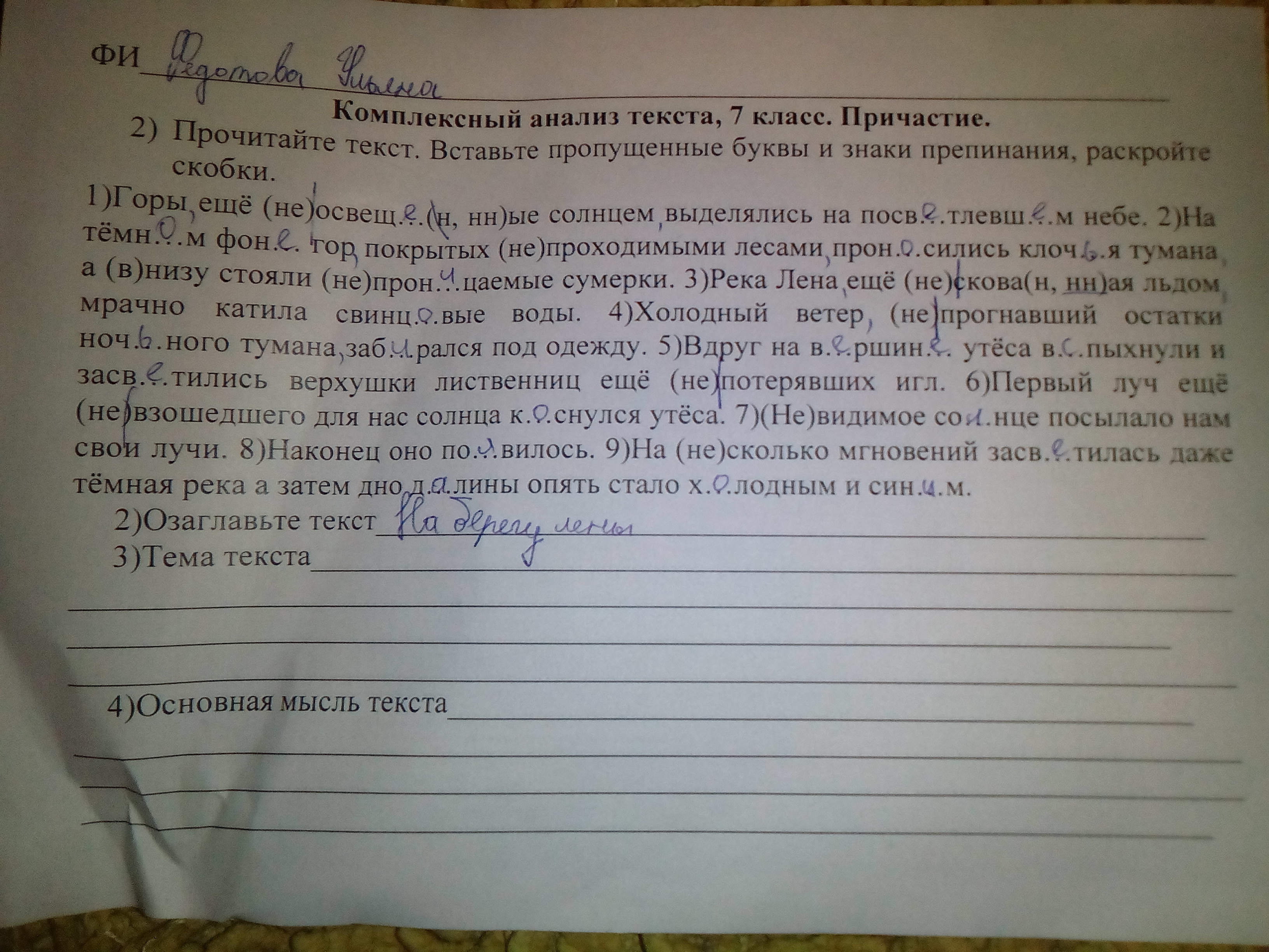 Мысль- Описывается начало рассвета над осенней рекой Леной,постепенное его наступление .