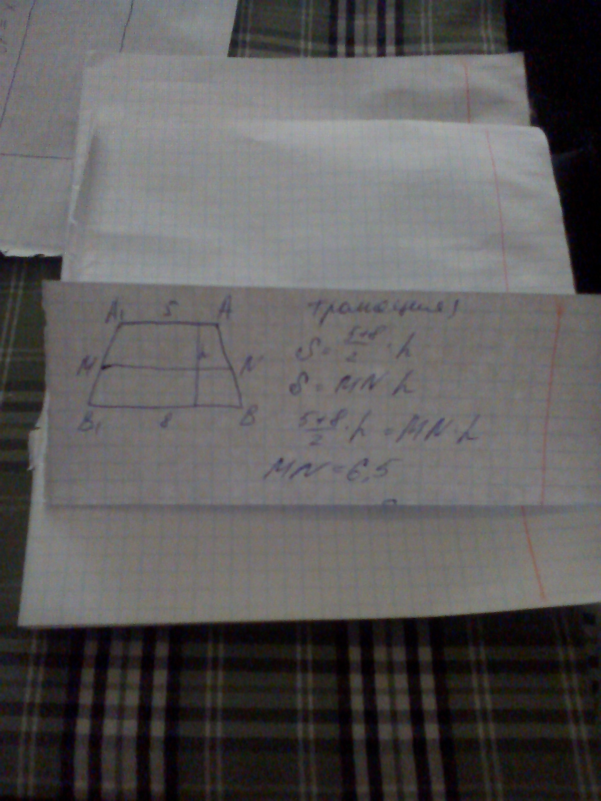 отсюда MN=(5+8)/2