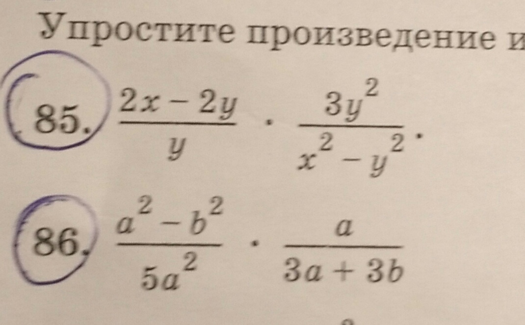 85/ =(2(x-y)*3y^2) / (Y((X-Y)(X+Y))=6Y/(X+Y)