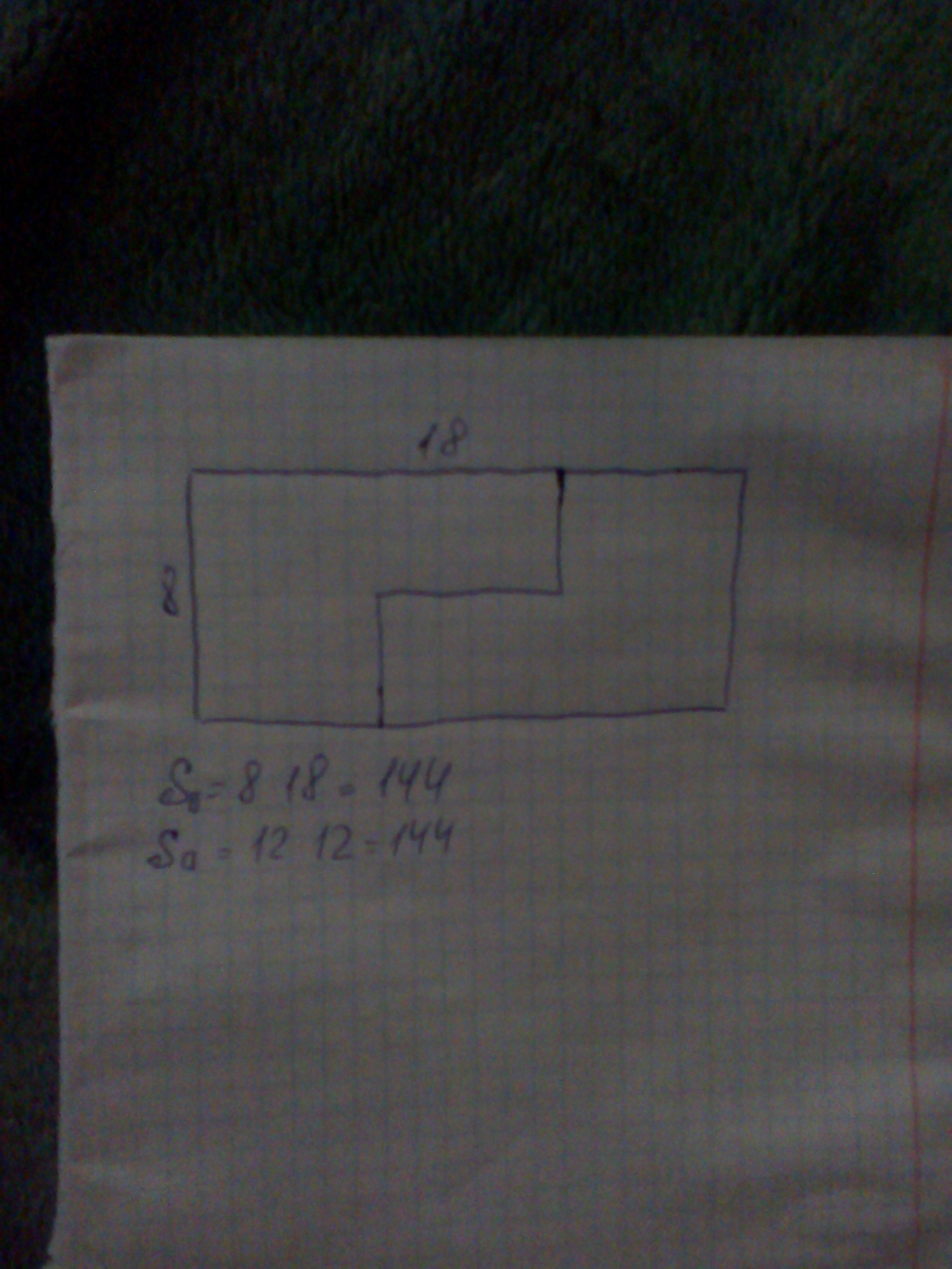 площадь прямоугольника 8*18=144;