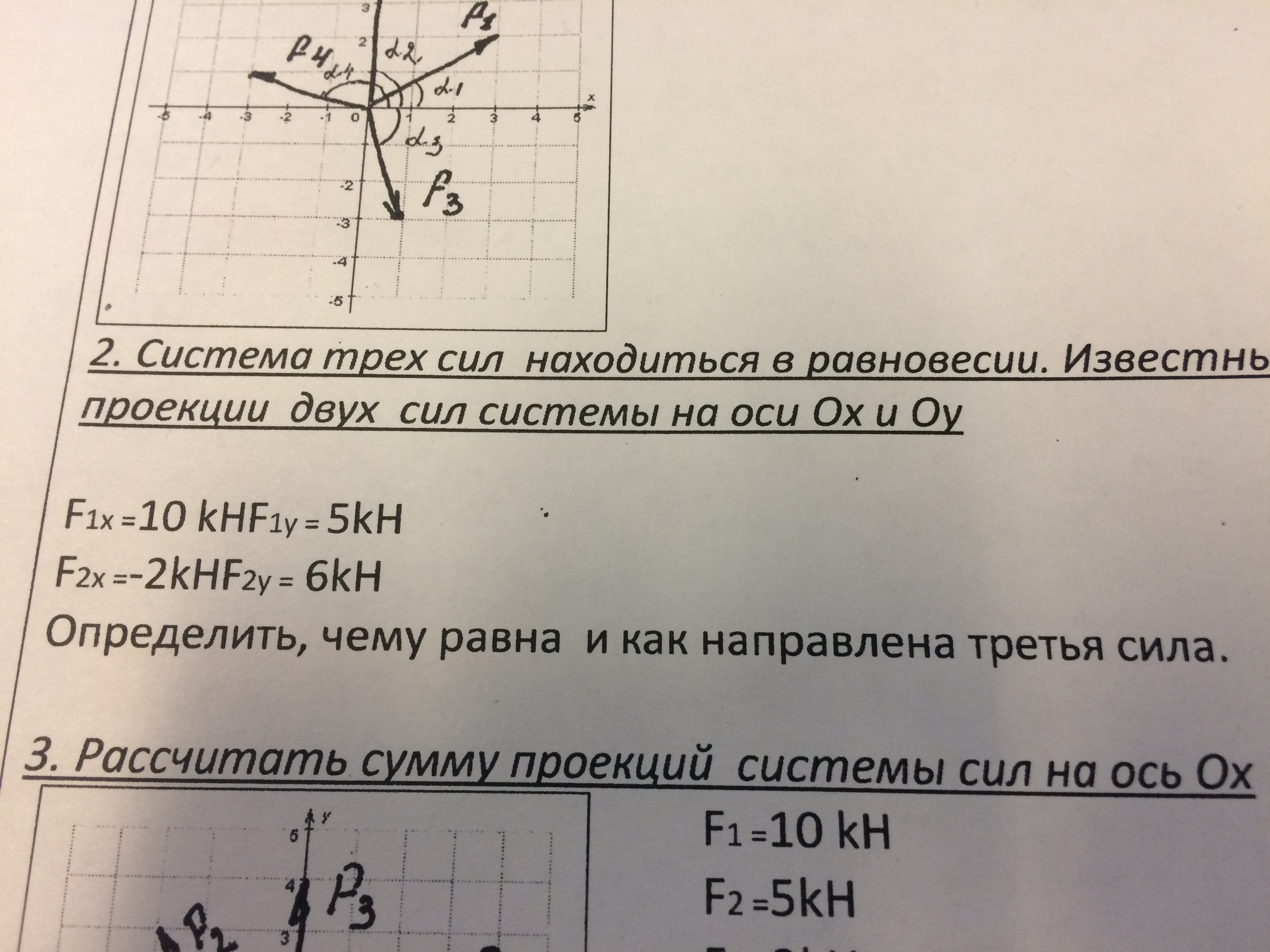 10-2+F3x=0; F3=-8 кН;