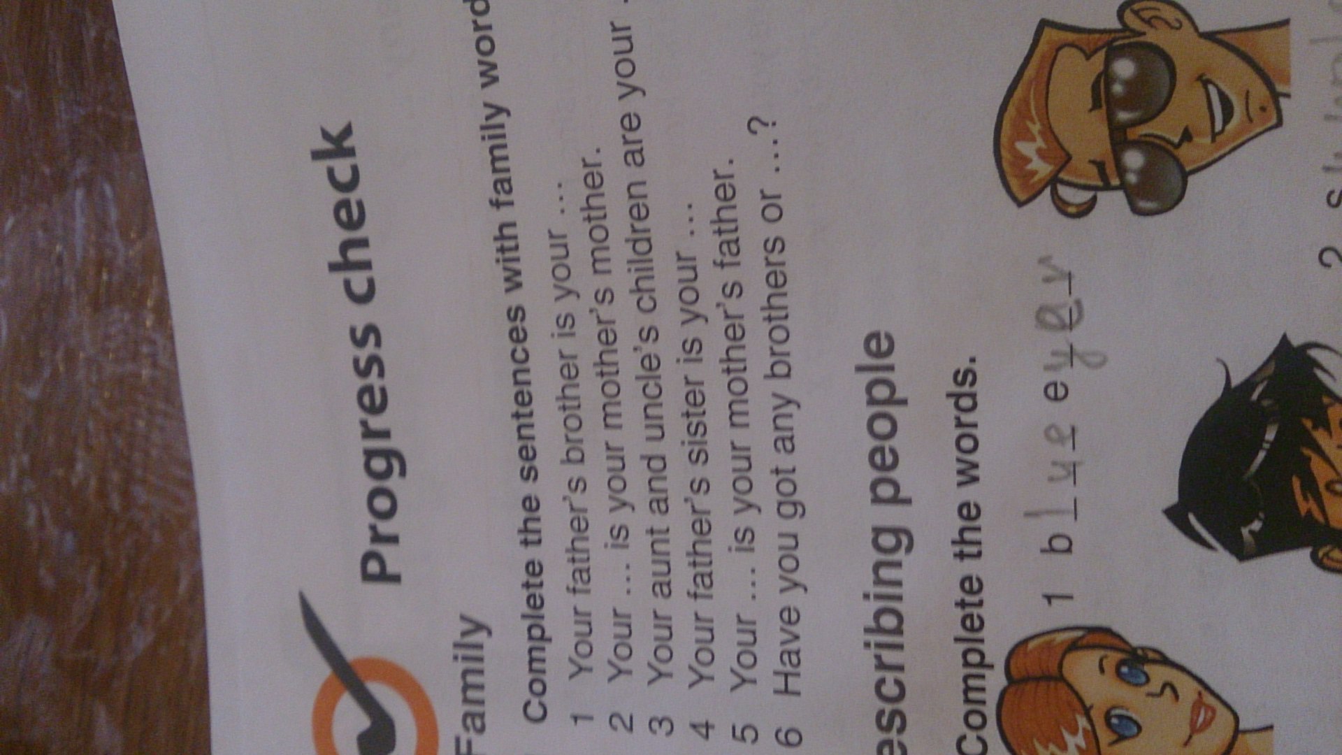 <strong>Complete the sentences with family words.</strong><br />1) Пример:<br />I've got an uncle called Jim. His son is my <u>cousin</u> Alex.<br />2) Karen's grandma is Sally. Sally's husband died, so Karen hasn't got a ....<br />3) Michelle Obama's .... is the President of rhe USA. Misgelle is his .... <br />4) Michelle Obama's father is dead, so the President hasn't got a ....<br />5) Jane and Tony love their grandparents, and theeir grandparents loveJane and Tony, their....<br />6) Kate and Tom are married. Kate's brother Nick is Tom's .... Tom's mother is Kate's ..., and his sister is Kate's ... .<br /> <em>Помогите пожалуйста! Заранее спасибо!!! </em>