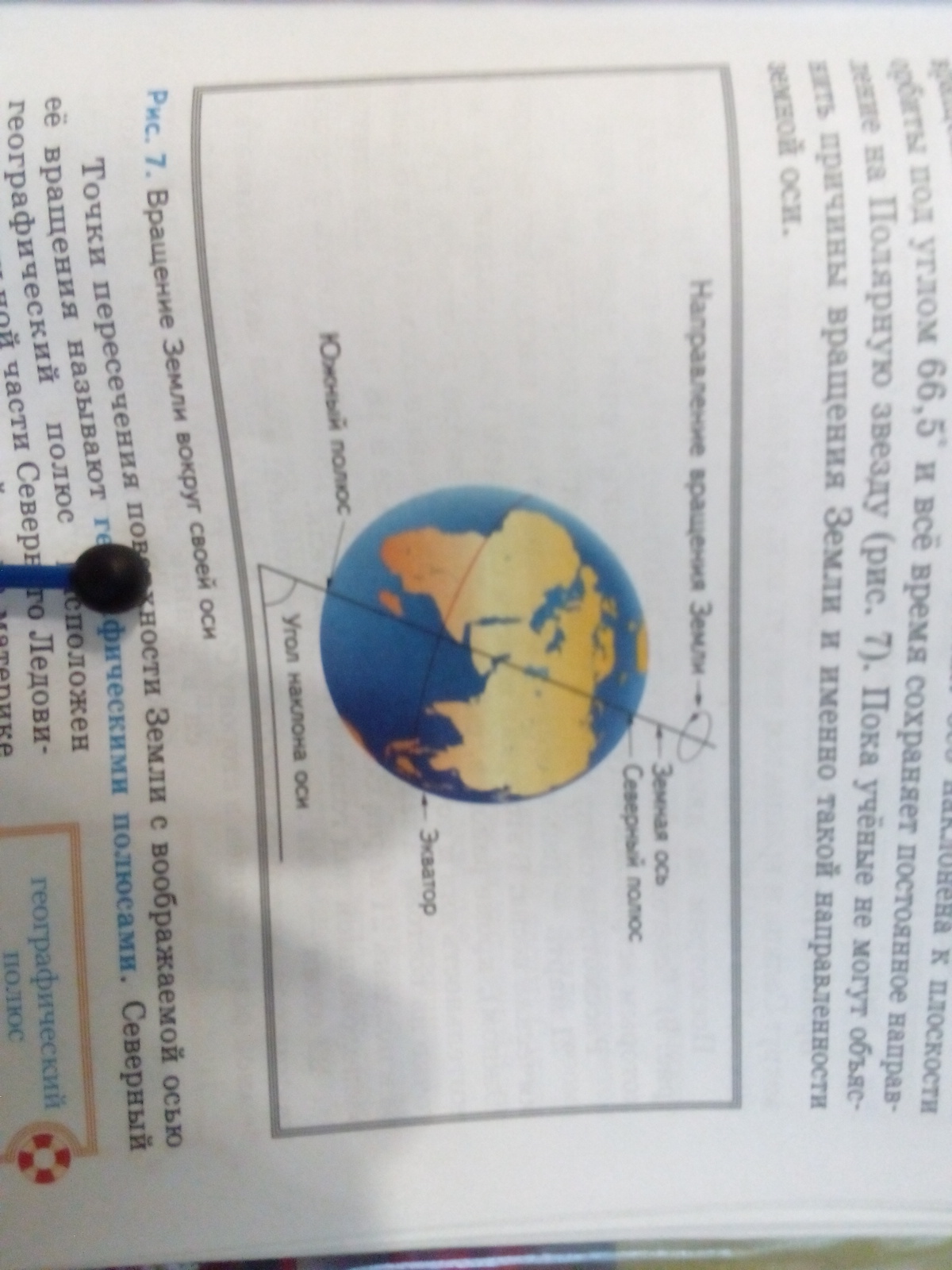 Земная ось наклонена к плоскости орбиты под углом 66°33. В основном этим наклоном обусловлены смены времен года.