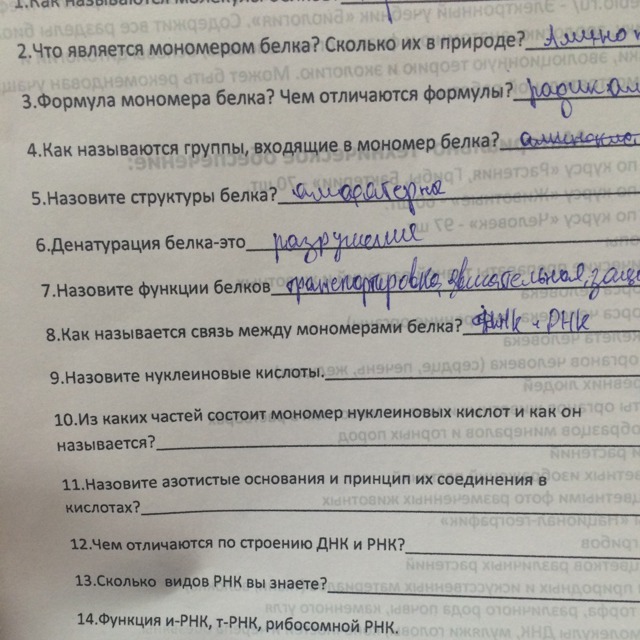 10. Нуклеотид (у ДНК: аденин (А) , гуанин (Г), цитозин (Ц) , тимин (T), у РКН вместо тимина - урацил (У))