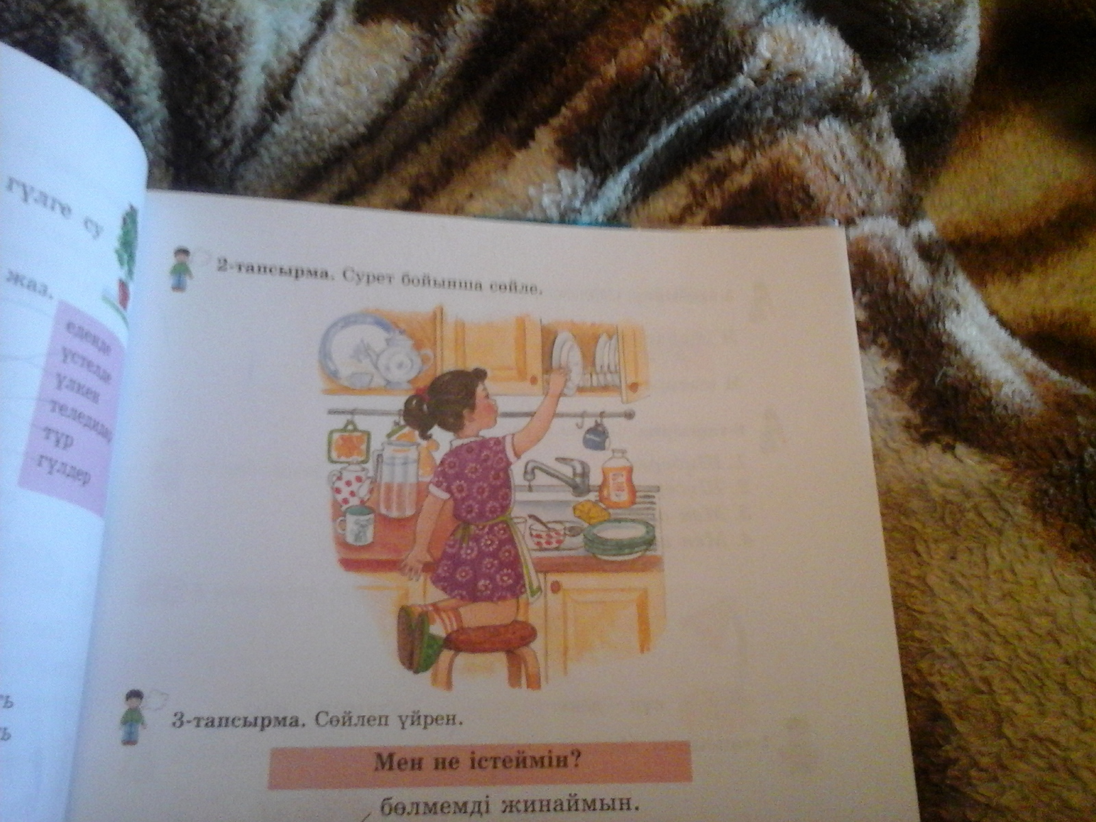 Мен тамақтан кейін, ыдысты жуамын.ыдысты суртып шкафка қоямың.анашымга көмектесемін.