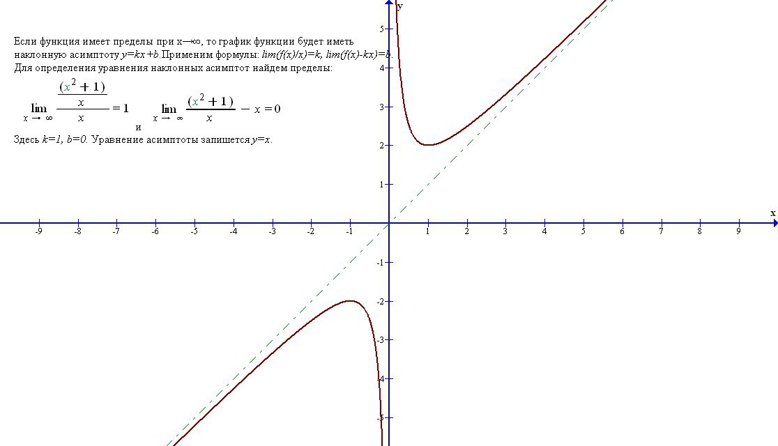 помогите пожалуйста найдите уравнение наклонной асимптоты графика функции y=x+1/x и изобразите сам график