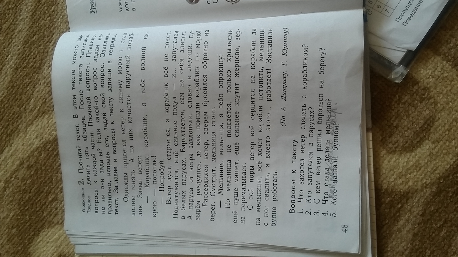 озаглавить можно ''злой ветер'',''ветер'' вместо последнего вопроса можно задать вопрос :почему злился ветер?