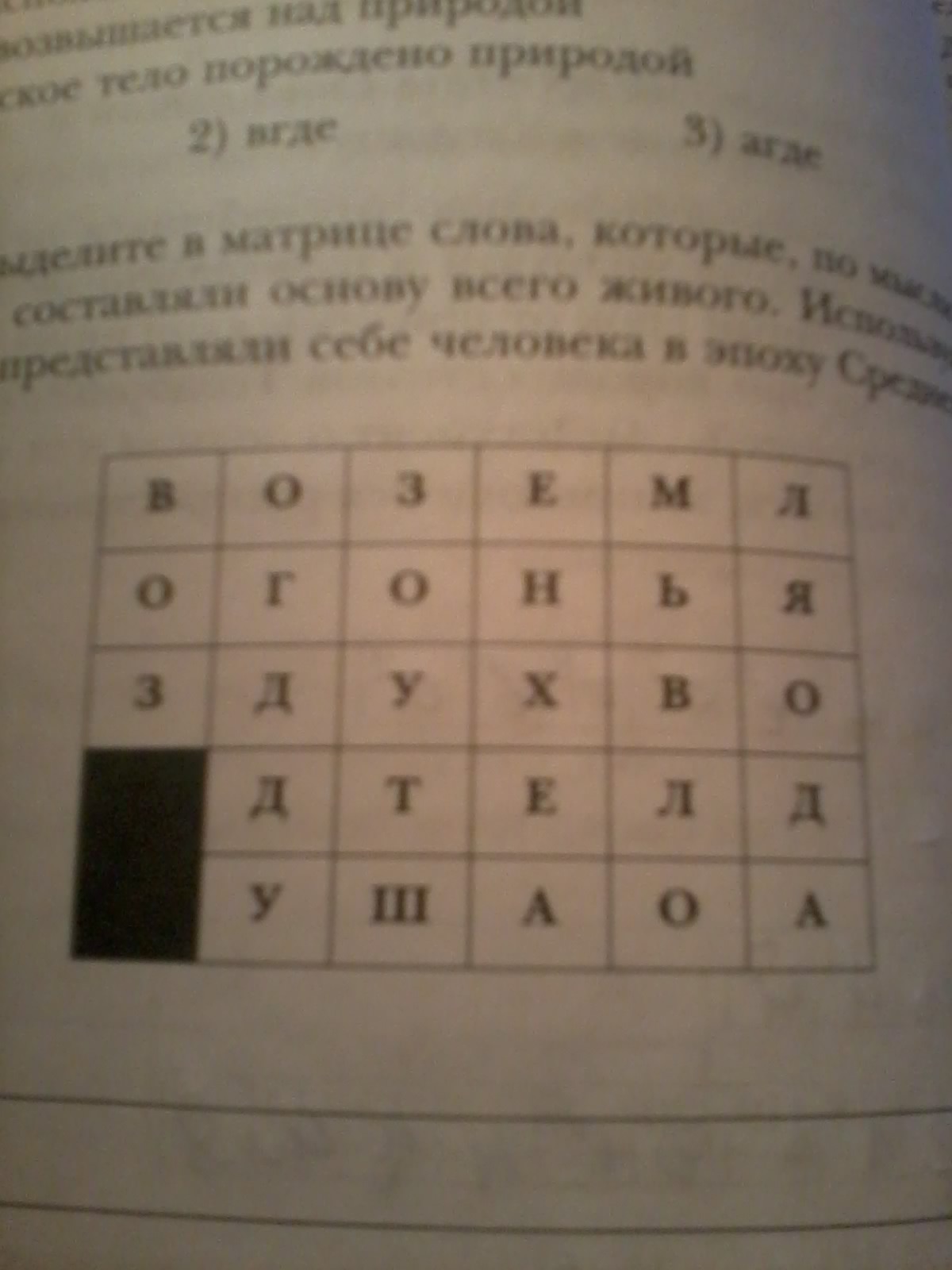 Слова которые, по мысли средневекового человека, составляли основу всего живого?Используя эти слова, запишите , как представляли себе человека в эпоху Средневековья,