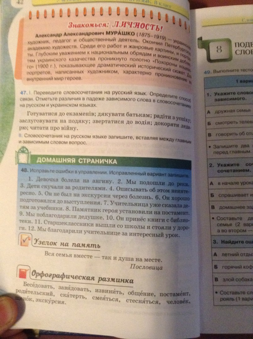 1. Девочка болела ангиной. 2. Мы подошли к реке. 3. Дети скучали по родителям. 4. Описывать это неинтересно. 5. Он не был на экскурсии из-за болезни. 6. Он хорошо подготовился к выступлению. 7. Учительница уже сказала детям об учебниках (про учебники). 8. Памятник герою установили на постамент. 9. Мы поблагодарили дедушку. 10. Он принёс книги из библиотеки. 11. Старшеклассники вышли из школы и встали у дороги. 12. Мы благодарили учительницу за интересный урок.