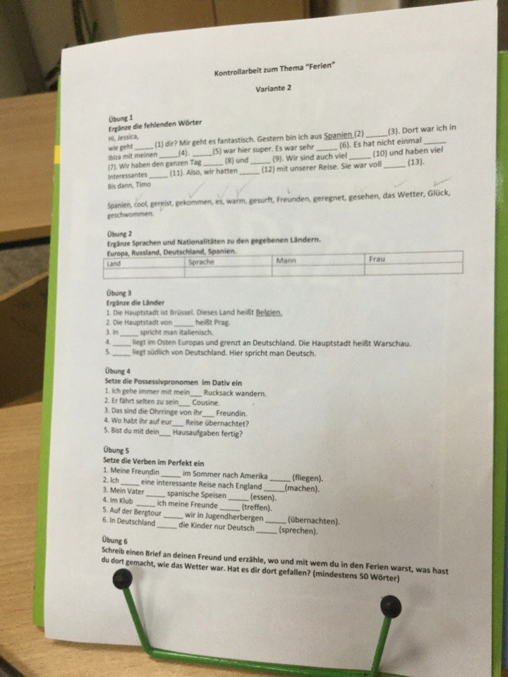 1) 1. es 2. Spanien 3. gekommen 4. Freunden 5. das Wetter 6. warm 7.geregnet 8. geschwommen 9. gesurft 10.gereist 11. gesehen 12.cool 13.Gluck
