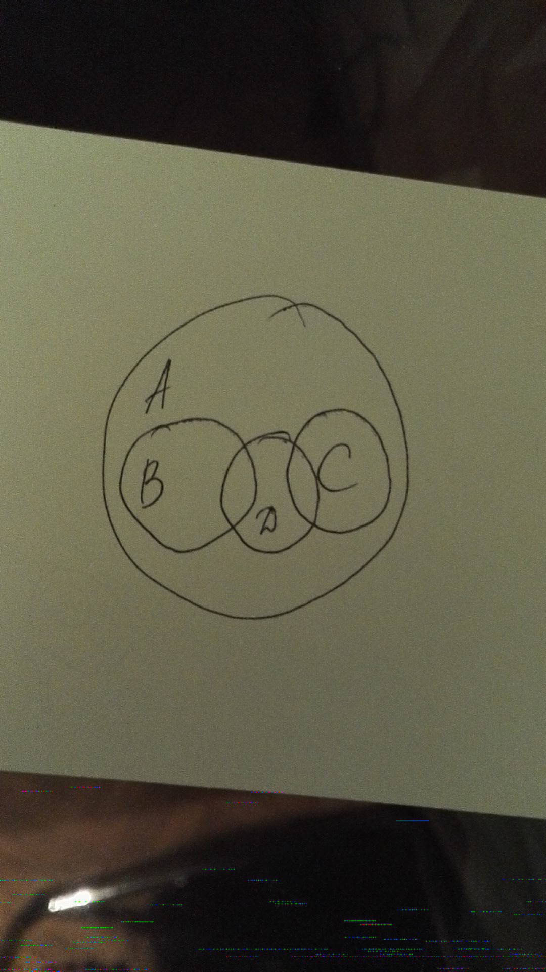 нарисуй диаграмму множеств А В С если:А множество машин В множество легковых машин С множество грузовиков D множество машин синего цвета