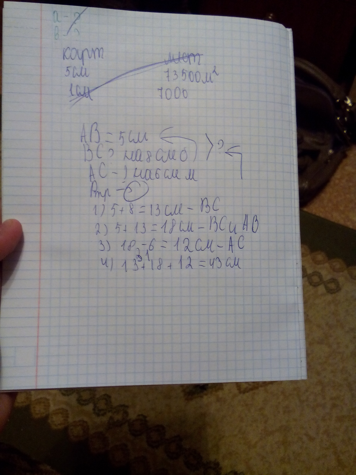в треугольнике АВС длина стороны АВ равна 5 см, сторона ВС длиннее стороны АВ на 8 см, а длина стороны АС меньше суммы длин сторон АВ и ВС на 6 см. Найдите периметр треугольника.