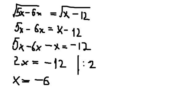 решите уравнение корень квадратный под корнем пять икс минус шесть равно корень из икс минус двенадцать