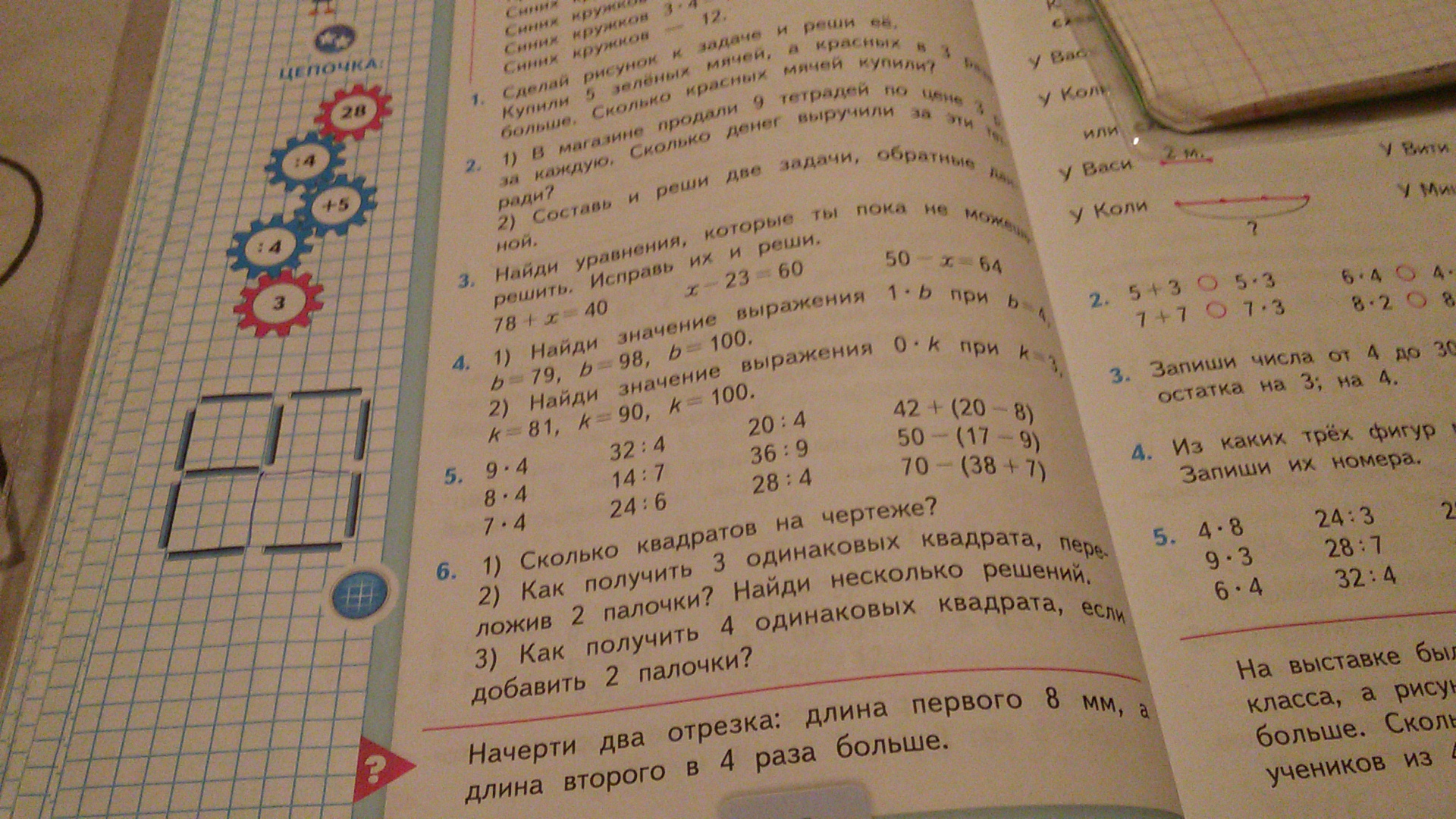 1.Всего квадратов 2 2.От нижнего левого угла переместить на пустые а второй верхнего левого угла.3. Просто в пустые места добавить 2 палочки