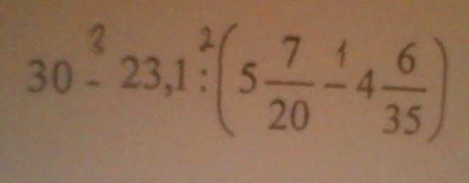 30 - 23,1 :(5 7/20 - 4 6/35)=10,4