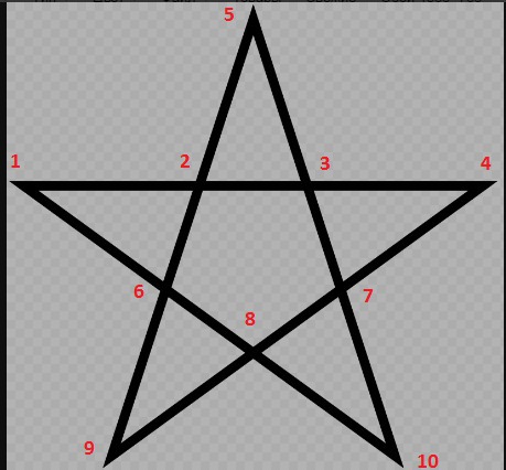 Чертим пятиконечную звезду.И на каждой линии -их 5 будет по 4 куста