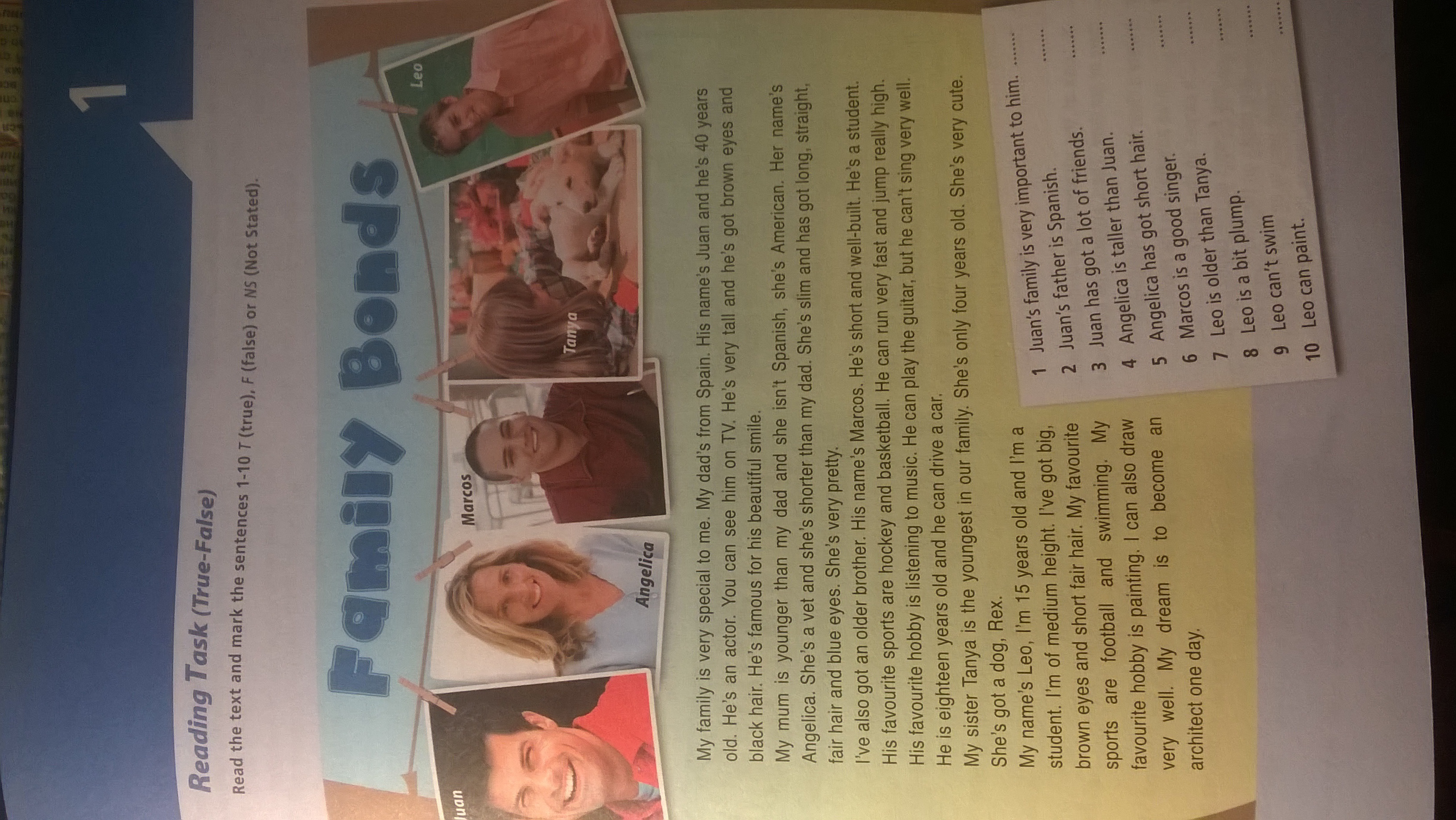 Моя семья очень важна для меня. Мой папа из Испании. Его имя Джуан и ему 40 дет. Он актер. Ты можешь видеть его по ТВ. Он очень высокий, у него коричневые глаза и черные волосы. Он знаменит своей красивой улыбкой