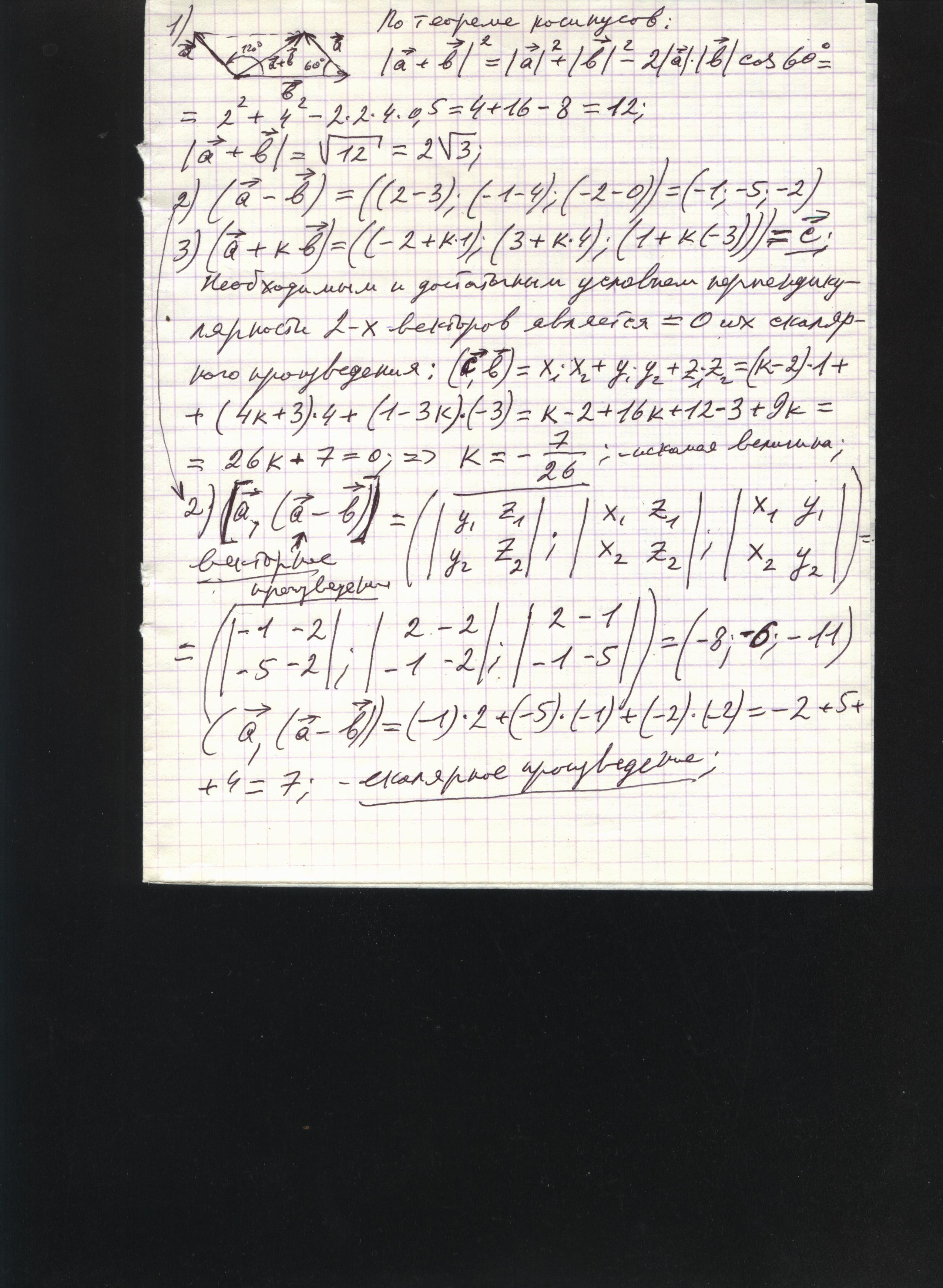 2) Найти : вектор a *(вектор a - вектор b), если вектор a (2; -1; -2), вектор b = 3i +4j [ вектор b (3; 4; 0)]